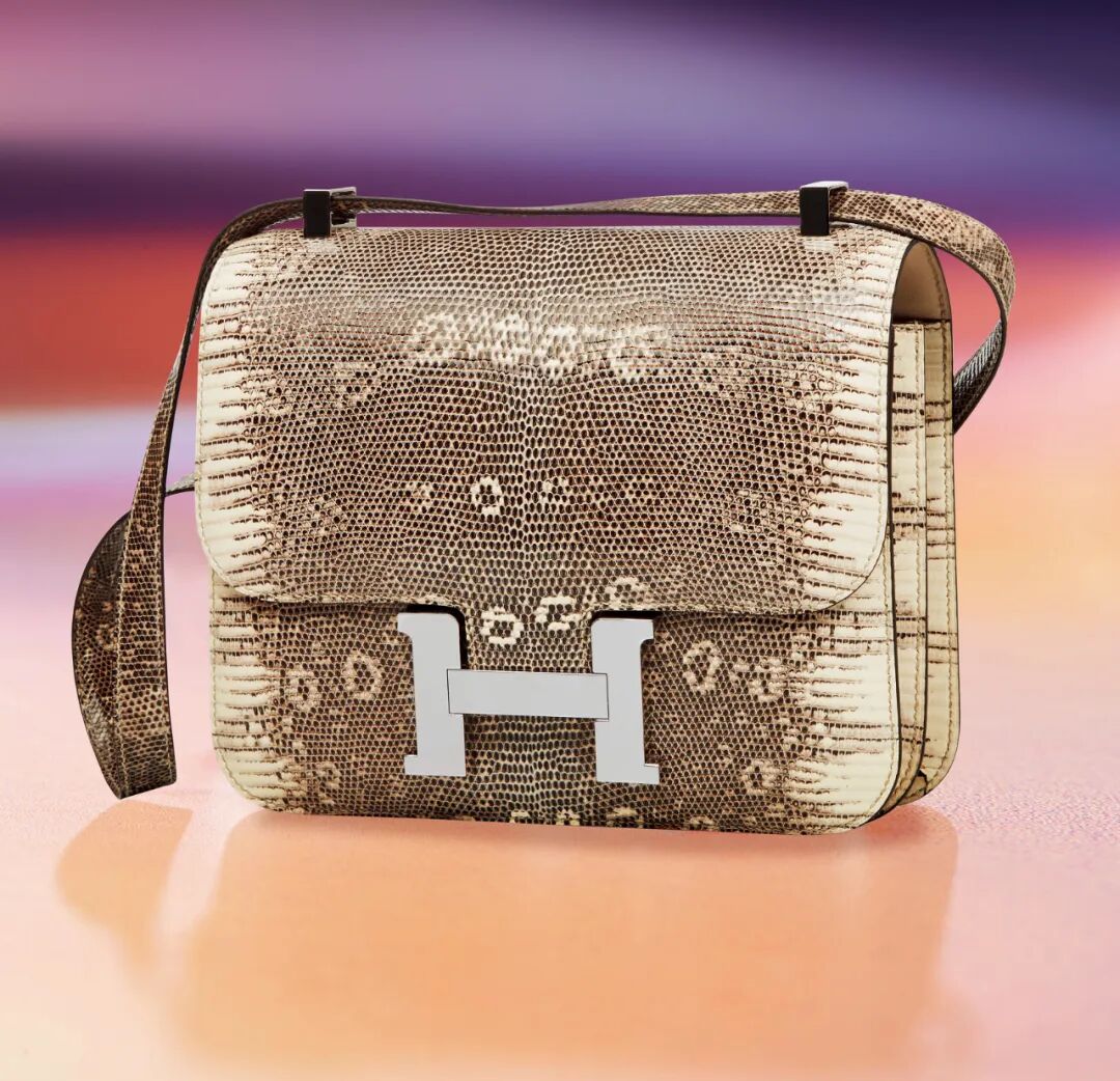 罕见原色蜥蜴皮24公分CONSTANCE包附银