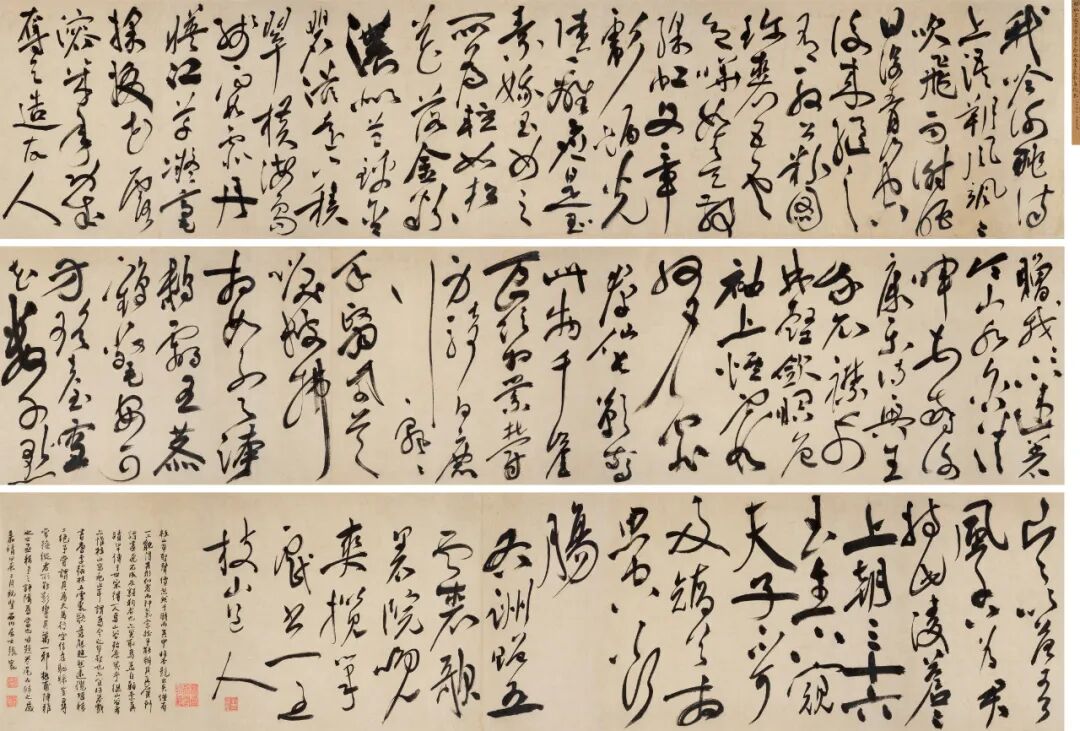 估价:RMB 7,000,000-12,000,0001.《书谱》杂志总第六十五期,第68至58页,书谱出版社,1984年。2. 黄惇等编著《中国历代书法名作赏析》,第170页,江苏美术出版社,1989年。3.张潜超主编《中国书法论著辞典》,第322页,上海书画出版社,1990年。4.徐利明《明人的浪漫主义书风与王铎风格》,《王铎论集 王铎国际书法研讨会论文》,第83页,中国书协学术委员会、王铎书画研究院、孟津王铎书法馆,1996年。5.黄惇、周祥林、曹军《王铎书法作品系年》,《王铎论集 王铎国际书法研讨会论文》,第391页,中国书协学术委员会、王铎书画研究院、孟津王铎书法馆,1996年。6. 周德聪等著《中国书法品评》,第232页,大众文艺出版社,2007年。7. 许海山主编《扬州八怪书法字汇》,第143页,中国戏剧出版社,2007年。8. 曹建主编《书法鉴赏》,第206页,西南师范大学出版社,2009年。9. 陶梦清著《中国书法艺术大师·王铎》,第187页,河北美术出版社,2009年。10.张以国著《正统与野道 王铎与他的时代》,第12页,文化艺术出版社,2010年。11.王树海主编《通赏中国书法》,第193页,长春出版社,2014年。12.邓建民著《王铎草书研究》,第213页,厦门大学出版社,2016年。13.郭伟亭著《文博专家郭若愚》,第67页,上海书画出版社,2016年。14.杨健君著《墨苑吟屐·中国书法史话》,第247页,天津人民美术出版社,2014年。15.薛龙春著《王铎年谱长编》第三册,第1304页,中华书局,2020年。1.《书谱》杂志总第五十八期,第38至58页,书谱出版社,1984年。2.郭若愚著《智龛金石书画论集》,第196至200页,上海古籍出版社,2006年。3.欧阳中石主编《草书教程》,第281页,江西美术出版社,2019年。4.薛龙春著《王铎年谱长编》第三册,图138,中华书局,2020年。5.黄思源主编《王铎书法全集》第九册,第1095至1110页,河南美术出版社,2020年。1.霍达上款。顾莼、郭尚先、戴鸣皋、韩崶题跋。郭尚先、郭若愚旧藏。2.霍达(?-1661),号鲁斋,陕西武功人。崇祯四年(1631)进士,官御史。顺治间,授监察御史,擢大理寺少卿,后官至工部尚书。好藏书。3.顾莼(1765-1832),字希翰,号南雅,晚号息庐,江苏吴县(今苏州)人,清朝官吏、学者。嘉庆七年进士(1802)进士,改翰林院庶吉士。散馆,授编修。累官至通政司副使,正直不阿。晚年名益盛,有文坛耆宿之誉。4.郭尚先(1785-1832),福建莆田人,字兰石,嘉庆十四年(1809)进士,官至大理寺卿。他博学善文,擅画兰竹,书仿赵董,秀劲天成,为嘉庆帝所赏识,日本、高丽(朝鲜)也争来购致。5.戴鸣皋,戴联奎子,江苏如皋人,后迁至北京。历任江西信丰县、兴国县、南丰县知县,著有《本草方药参要九卷》。6.韩崶(1758-1834),江苏元和人。字禹三,号旭亭、桂舲。乾隆四十二年(1777)拔贡,廷试一等,分刑部,历福建按察使、广东巡抚署总督、刑部尚书兼兵部尚书。以失察候际清案左迁,未几复补刑部右侍郎,以疾告归,与潘奕隽、石韫玉、吴玉松、陶澍合称为“沧浪五老”。7.郭若愚(1921-2012),字智龛,上海人,中国著名的文博专家、古文字专家。师从邓散木、阮性山、郭沫若学习古文字、考古、书画、金石篆刻等多方面专业知识,成就卓越。