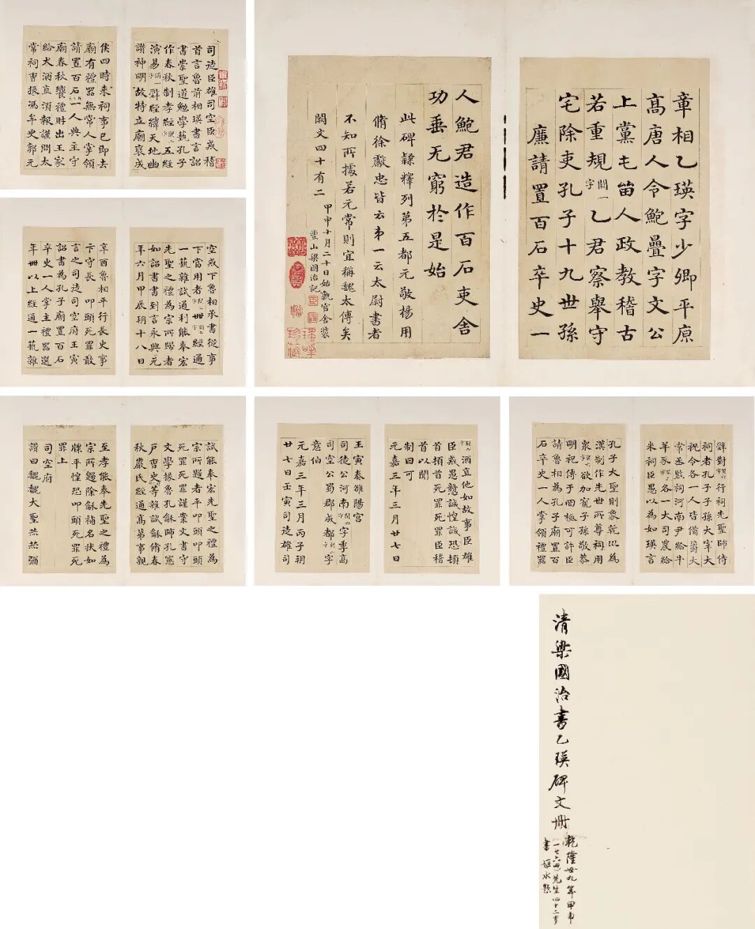 封面陆震铨题签“梁国治书汉乙瑛碑文册,壬申正月十二日,姬水题。”末梁国治题识“甲申十月二十日姑孰官舍装,丰山梁国治记。”