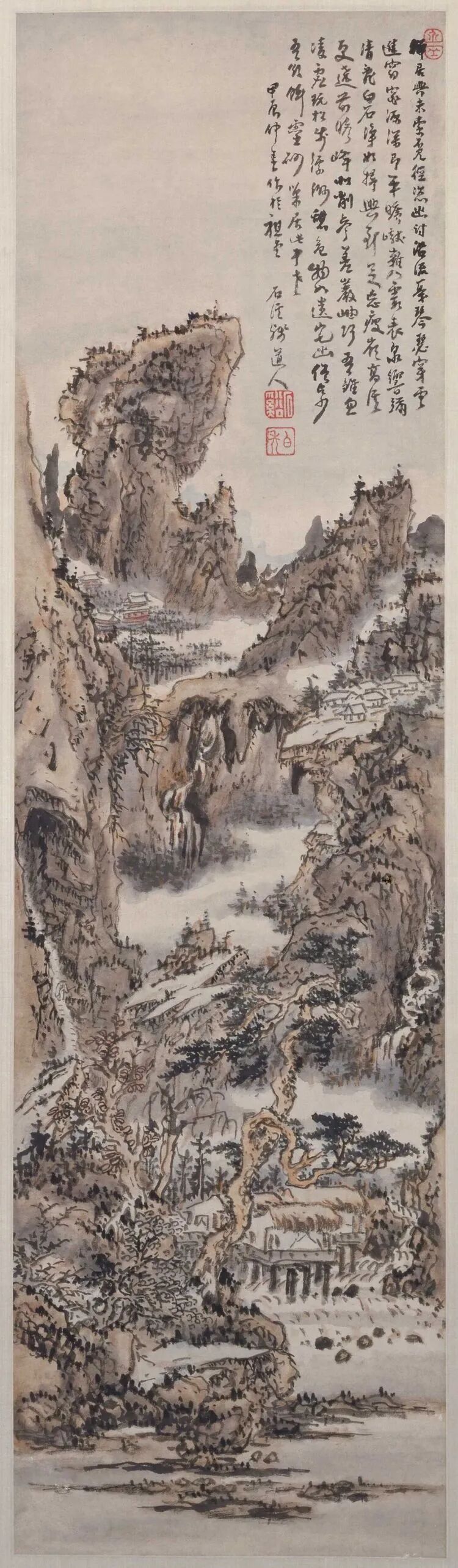 层岩叠壑图 清 髡残 纸本设色 纵107 X横41.4厘米 北京故宫博物院藏