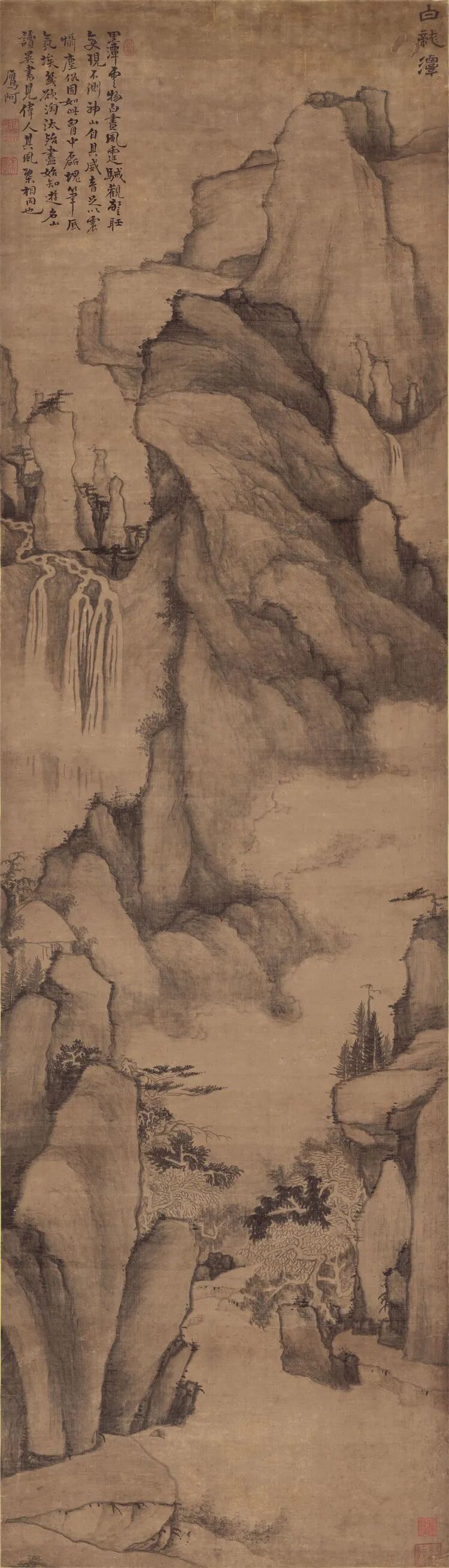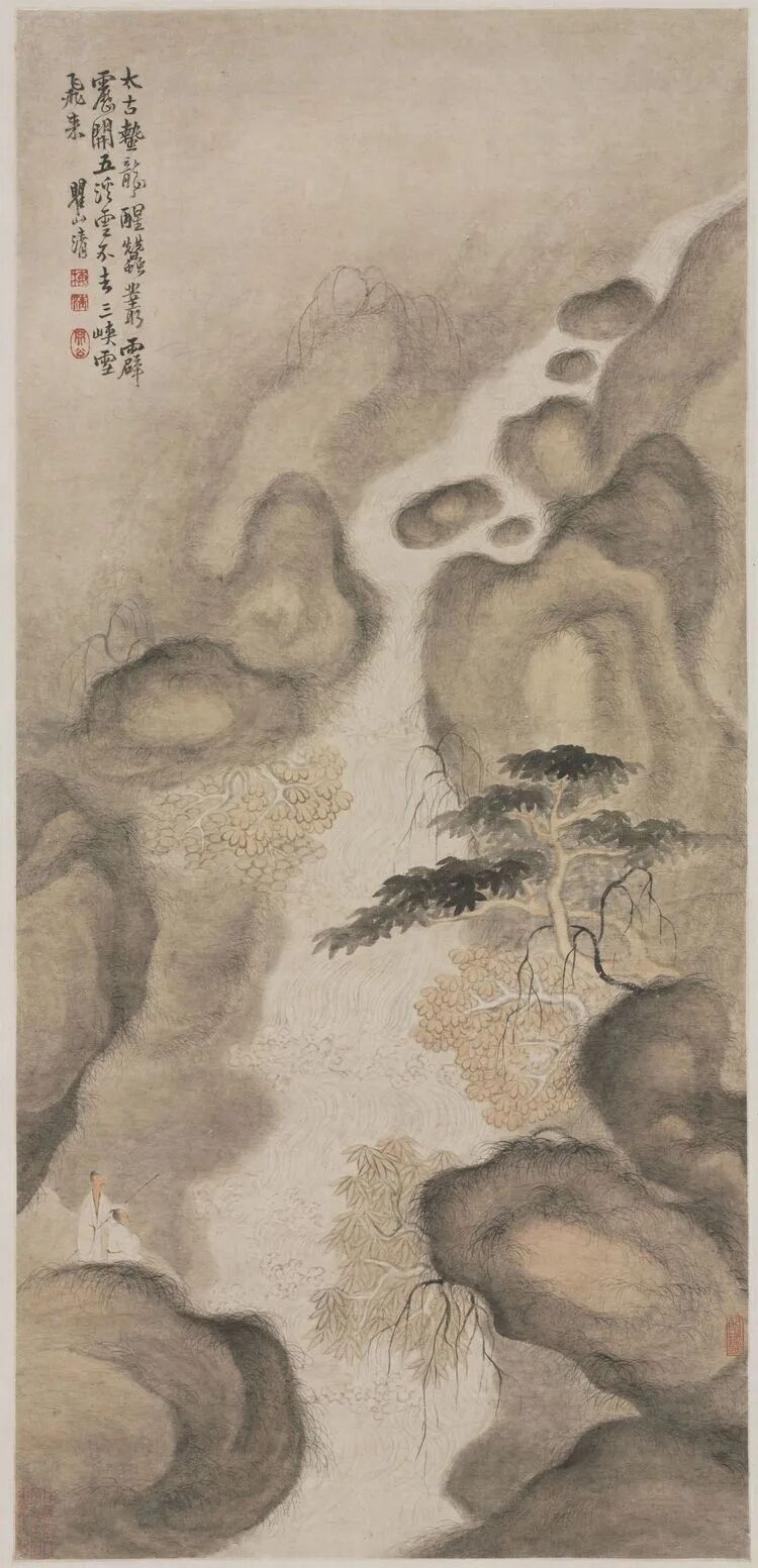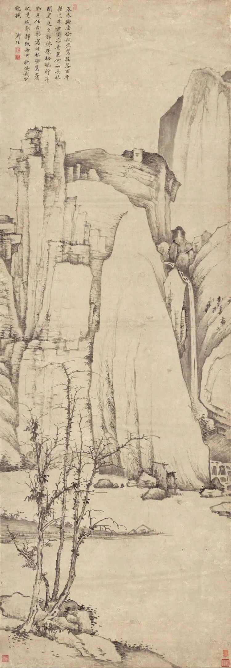 梅清~九龙潭图,立轴 纸本 浅绛 92x43.5厘米,藏:克利夫兰艺术博物馆,