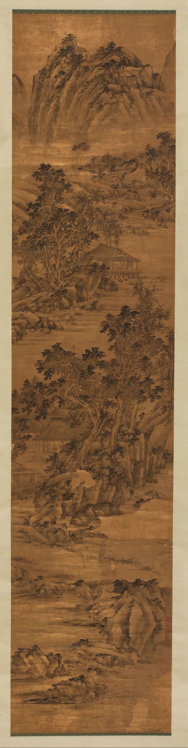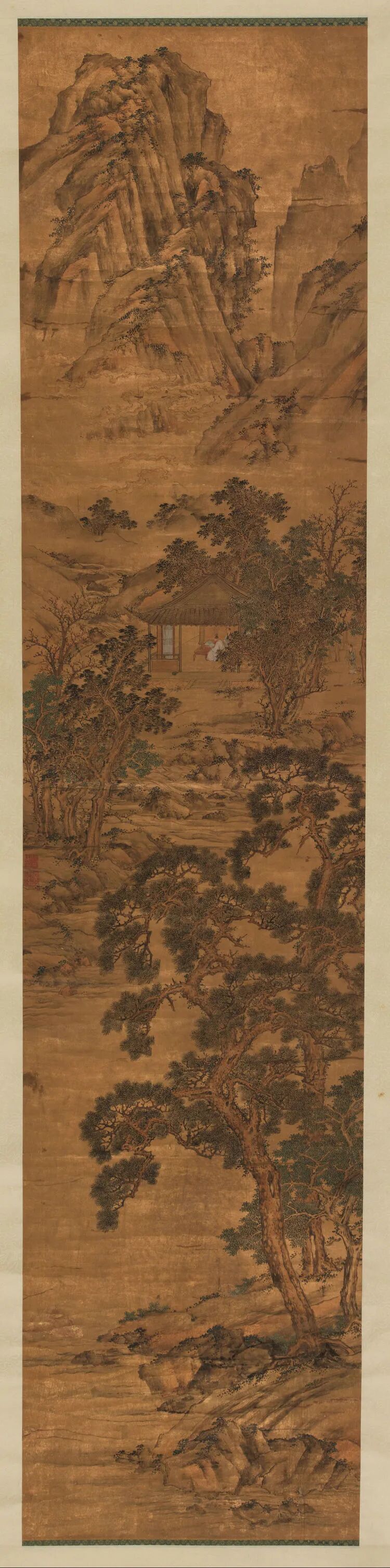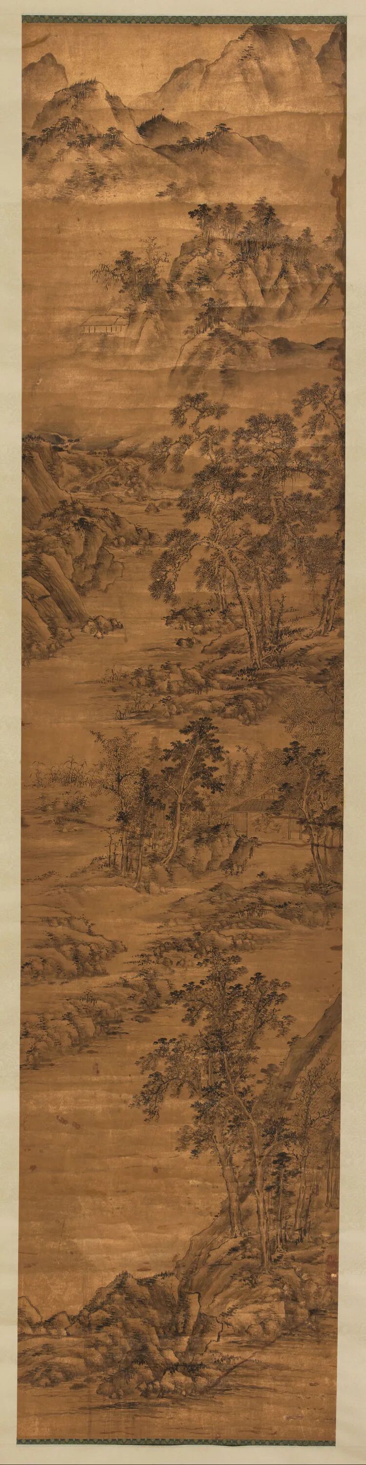 鉴~溪山深秀轴,绢本,设色,282x77.6cm,台北故宫博物院藏。
