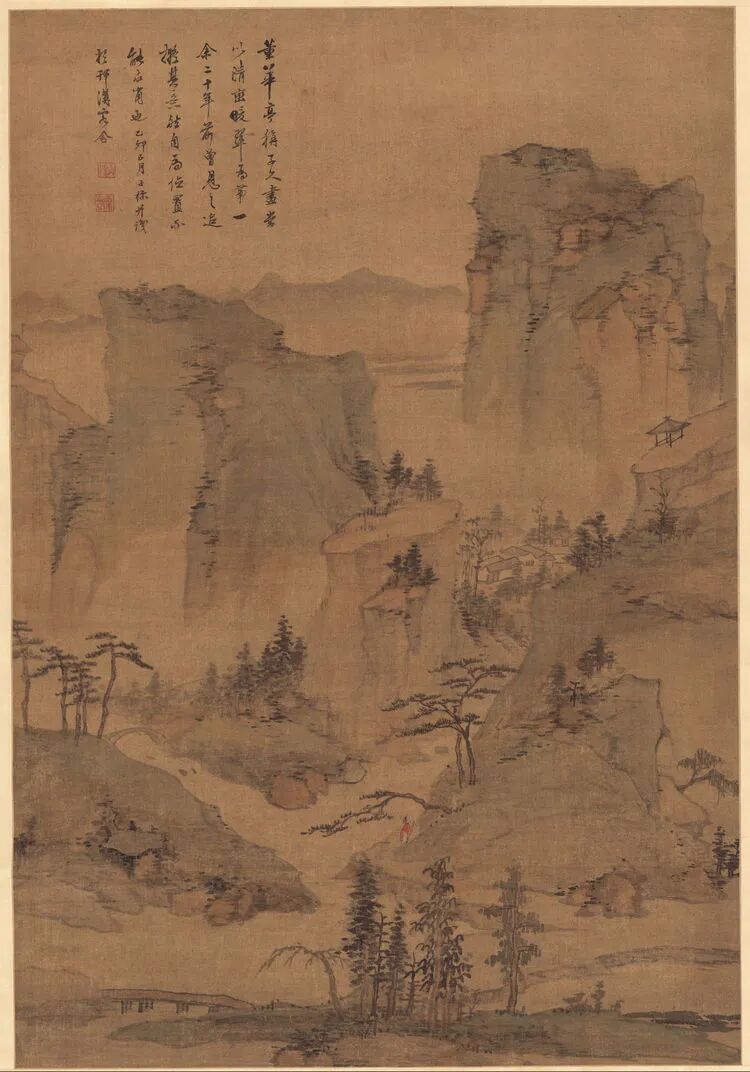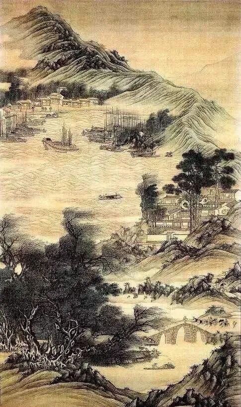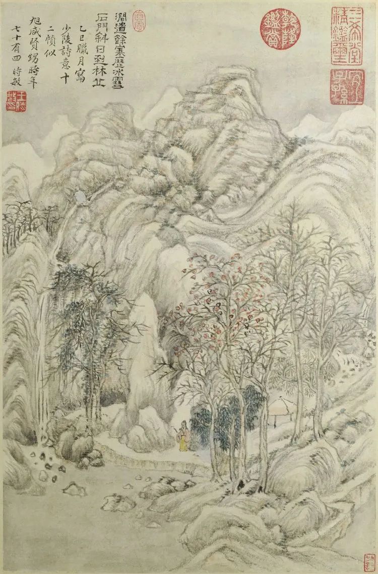 王时敏~虞山惜别图,此图取常熟城郊虞山之景,用笔苍劲老辣,颇具元代黄公望笔意,山石作披麻皴,苔点细密, 皴染细腻,一派山清水秀的江南景色。撰稿人:文金祥(故宫博物院官网)