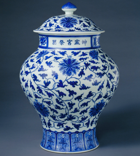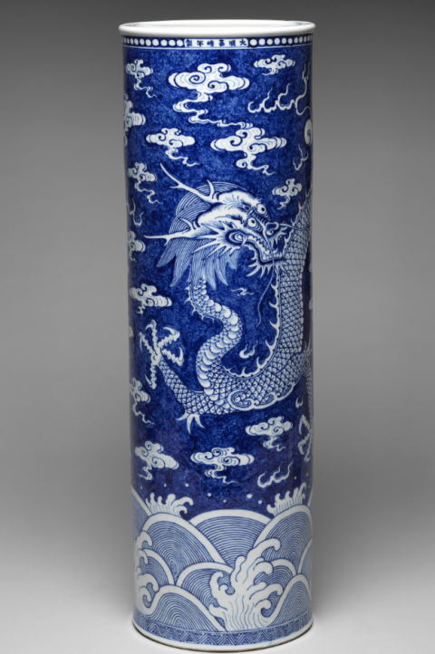 清康熙 青花团花纹摇铃尊 美国大都会博物馆藏