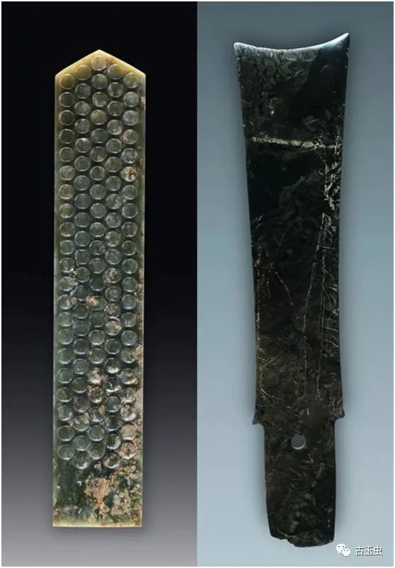▲左:玉圭 明 中国国家博物馆藏 右:玉牙璋 新石器 中国国家博物馆藏