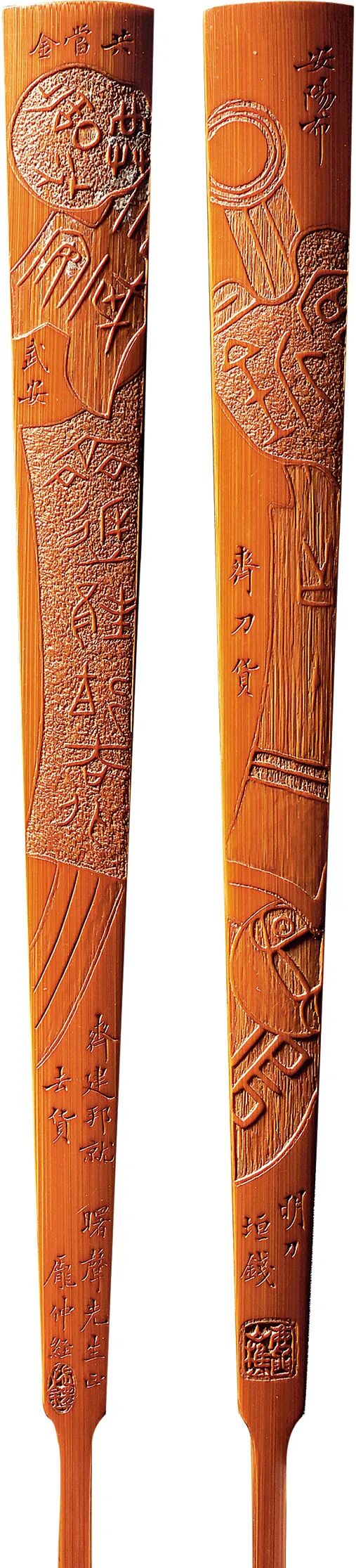 书中涉及的竹刻扇骨,很多还在艺术品市场流通,在整理编辑的过程中,我们找到了几柄扇骨实物,可资对比。