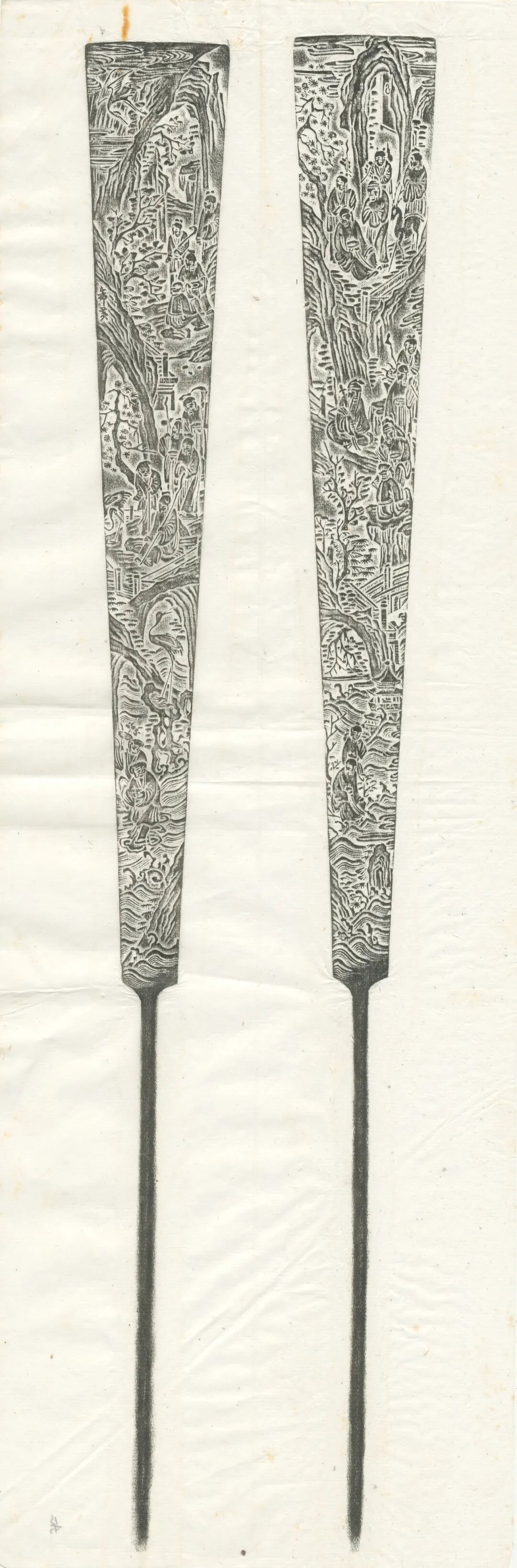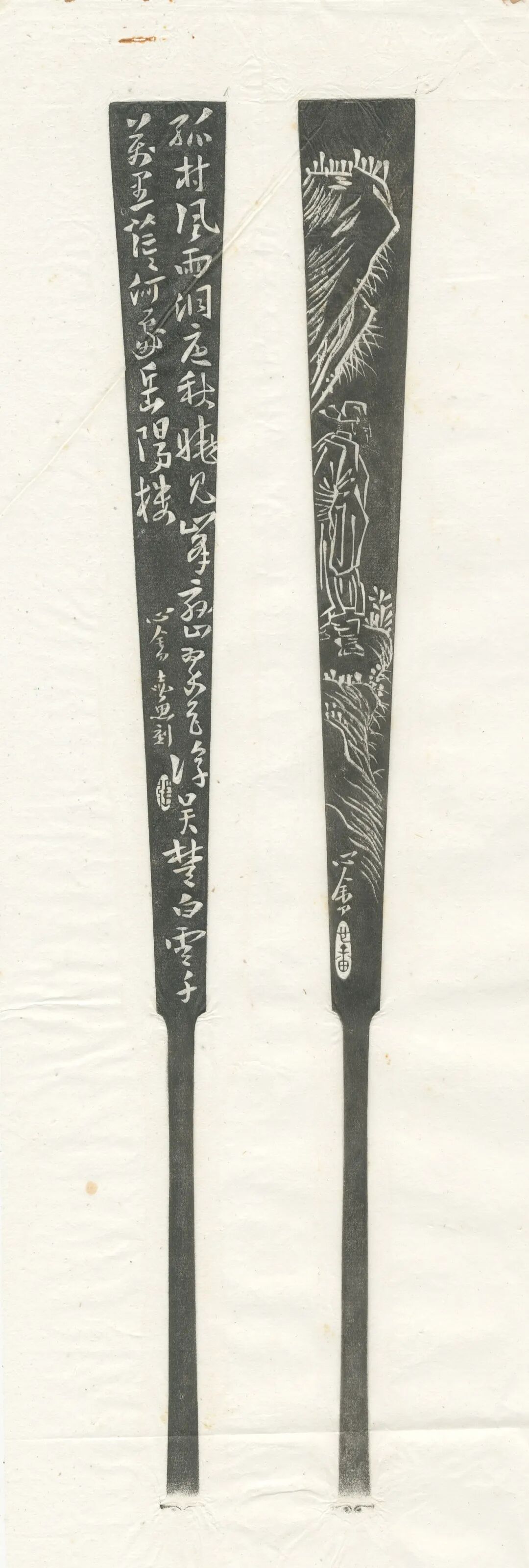 在编辑的过程中,碰巧找到几把扇骨的实物,虽然没有在书中放入实物照片,故特地在公号里展示实物与拓片的比对图,也可见拓工的精良,也显示了当年许勇翔先生此项工作的意义。另外,从欣赏的角度,扇骨实物也没有拓片更好地呈现艺术全貌。