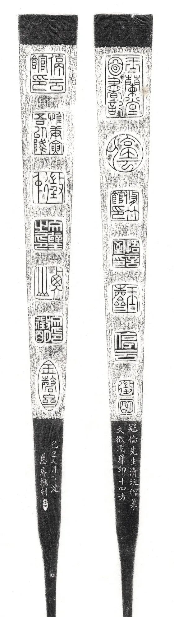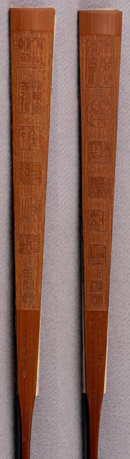 这便是竹刻扇骨特殊之处,它融合了金石气和书卷气。另外从以上的拓片可见,除了审美和实用外,竹刻扇骨上还保留了十分丰富的历史、人文信息。