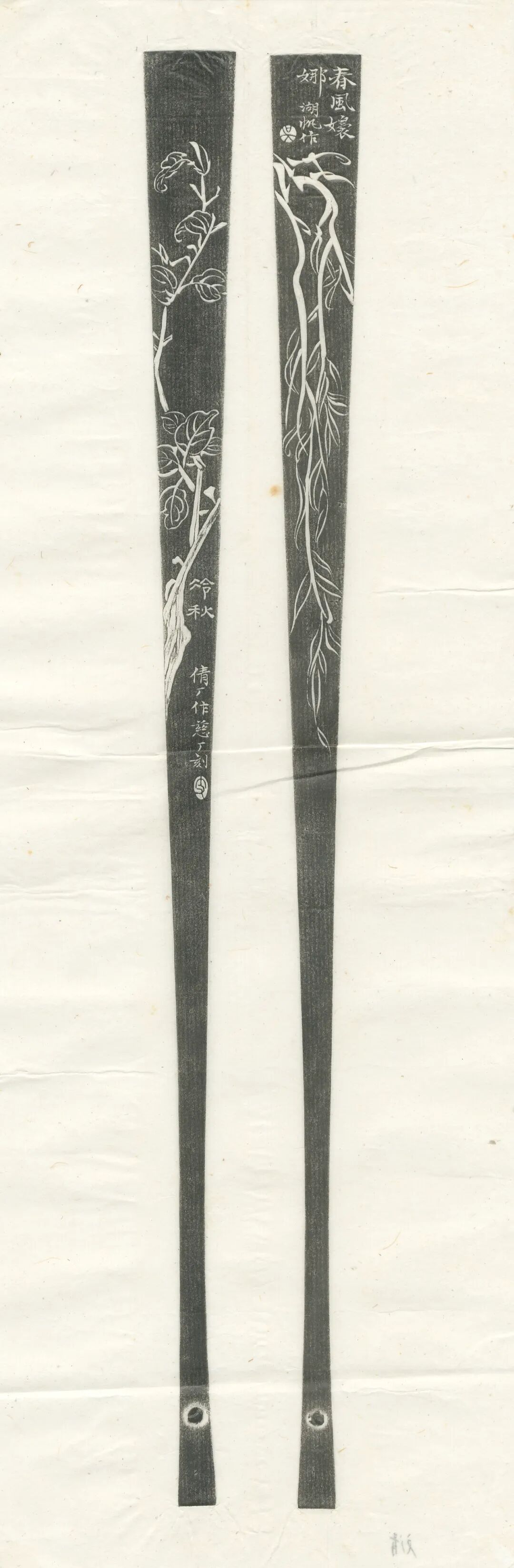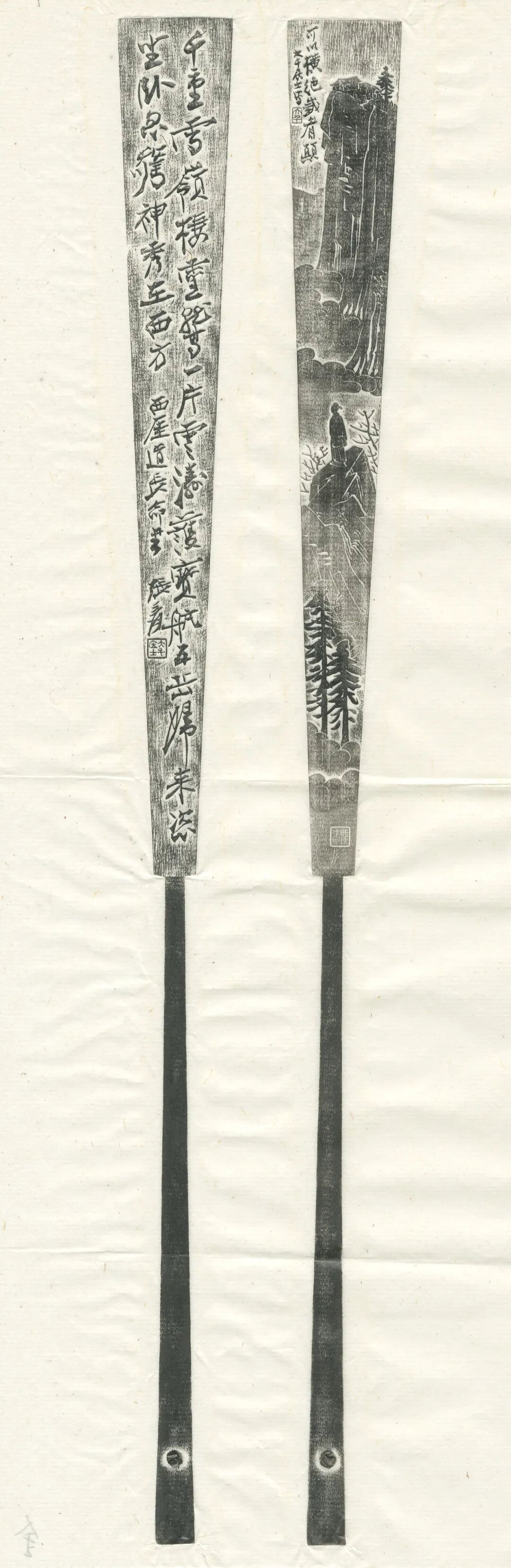 传拓是摄影术诞生前留存实物文字、纹饰乃至器物形制等信息最重要的记录技术。许勇翔先生利用此方法记录下他过眼的精美竹刻扇骨,而且拓工精良,丝毫毕现。