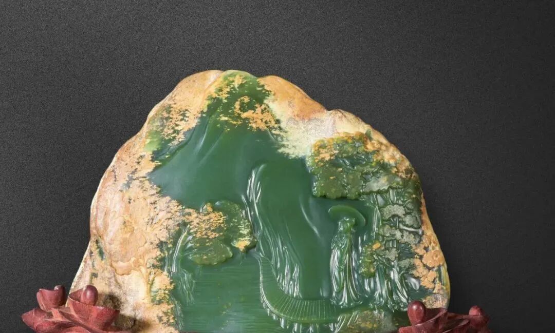 从特征上来说,析木玉的外表则通常包着一层浑然天成的表皮,玉皮颜色较深,有褐红、褐黄、灰褐、黑色、白色,还有黄泥皮和油皮等。这些颜色很难出彩,所以很少用其巧雕,更多是作为标志特征留下。而碧玉的显著特征是黑点和黑块。当然也有很多碧玉没有黑点,比如鸭蛋青。而使二者最容易混淆的,恰恰是这种鸭蛋青色彩的两种玉。