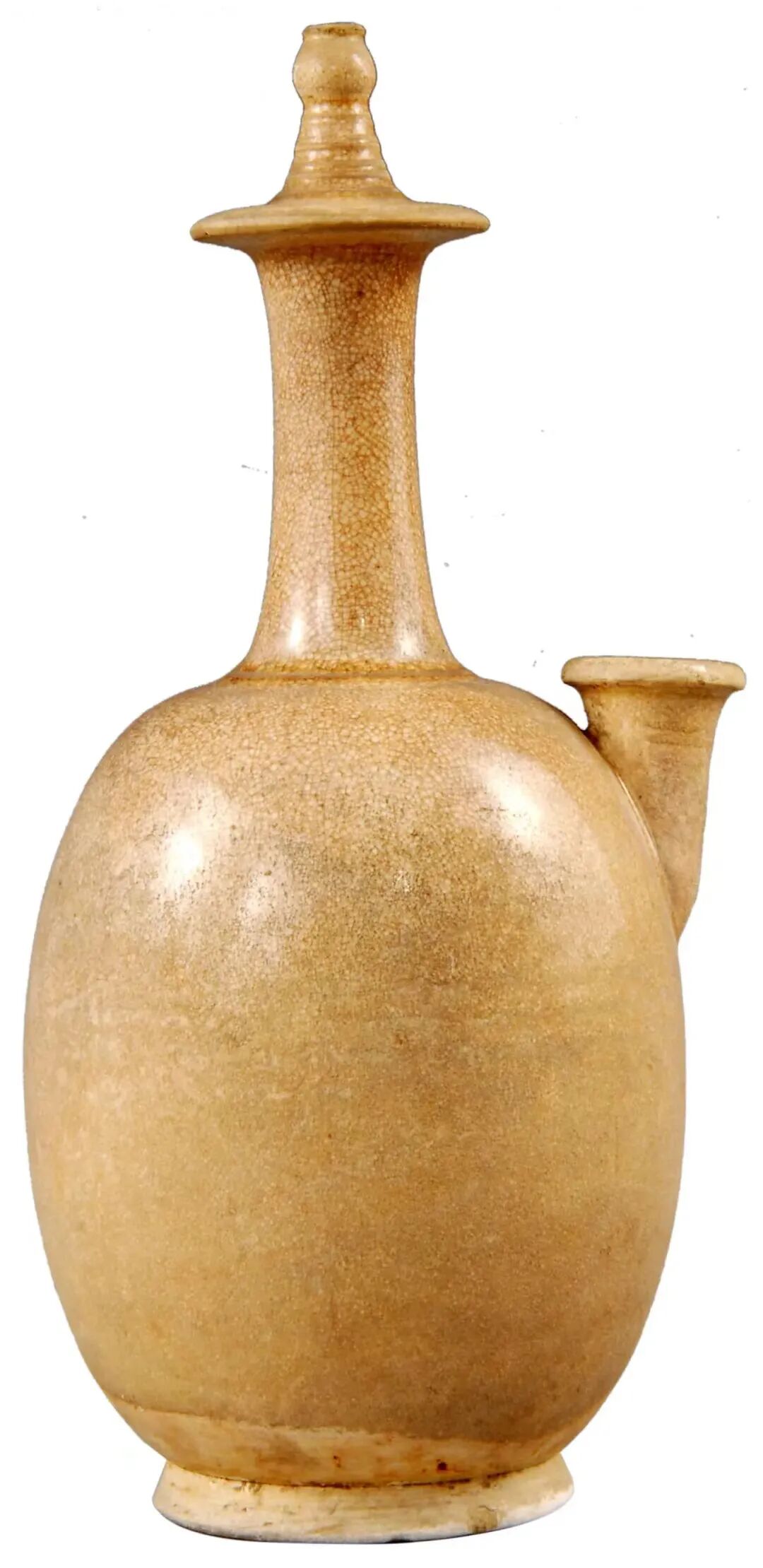 2003年出土于南越国宫署遗址南宋地层中。口径8.3cm、腹径16cm、底径8.3cm、高17.5cm。器身绘褐色卷草纹,器形犹如瓶身加盖,宽卷口,长颈大腹,一侧腹肩部安一长流,无耳、把。宽口便于装水,长颈便于持握,长流便于倾注,在东南亚、西亚地区深受欢迎。应是当时专门订烧之作。