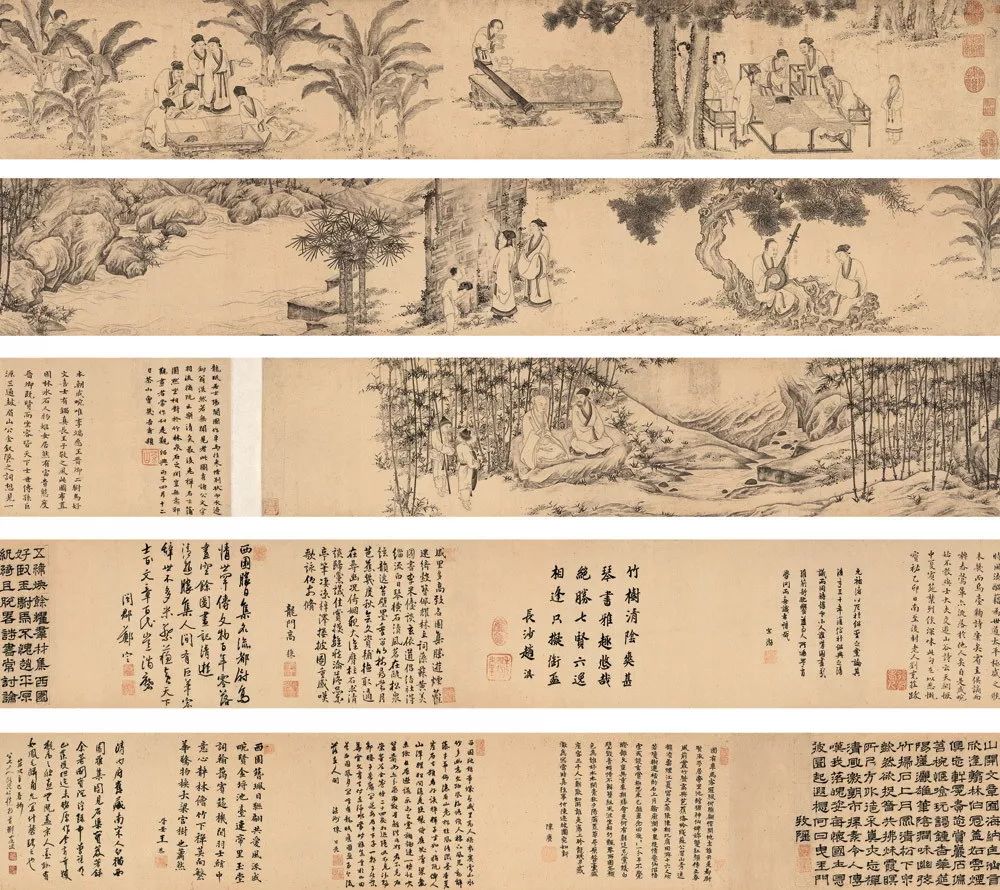 传统的文人雅集,其主要形式是游山玩水、诗酒唱和、书画遣兴与文艺品鉴,因而带有很强的游艺功能与娱乐性质,以文会友、切磋文艺、娱乐性灵为基本目的,文人雅集最重要的特征是随意性。正是这种随意性与艺术的本性相契合,使得在历代文人雅集中产生了大量名垂千古的文艺佳作。今天我们就来看看历史上那些著名的雅集,每一次都令人神往。