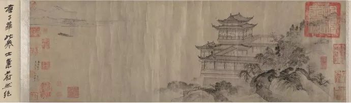 元 唐棣《滕王阁图》卷,纸本水墨27.5 x 84.5 cm,纽约大都会艺术博物馆藏