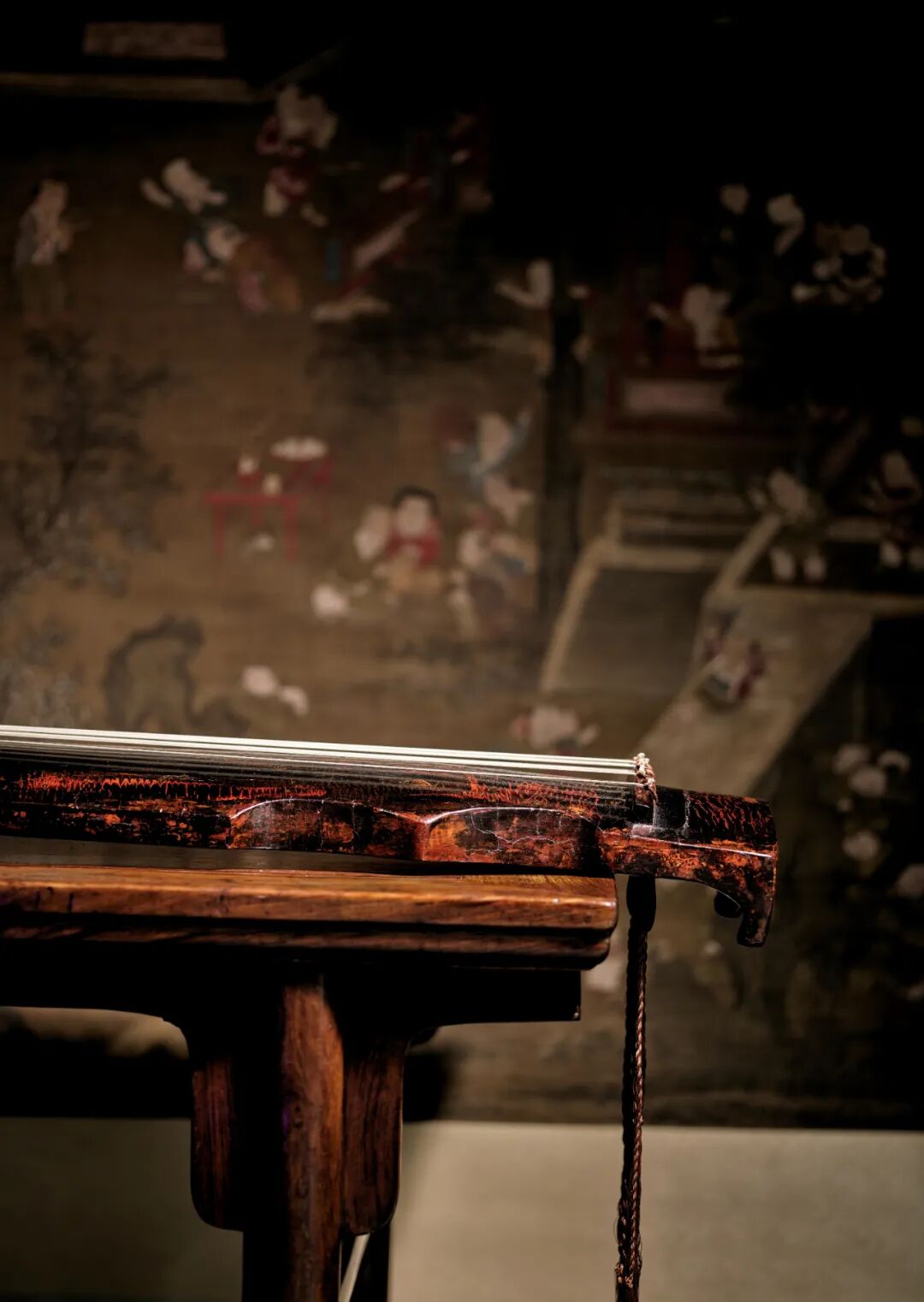 古琴音色细腻精致,有「圣贤乐器」之称,是中国古代文化地位最崇高的乐器,位列四艺「琴棋书画」之首,2003年更成为世界非物质文化遗产。然而,古琴不仅是乐器,也是抒怀寄情之物,音色内敛而充满余韵,有其空灵之美,乃传统高雅艺术的典型代表,是以文人雅士也不弹古筝、琵琶,而专弹古琴。李子昭祖籍四川,自称山林派,而其琴艺在1920、30年代被琴界推为第一。此琴出自其旧藏,呈凤势式,取鸾翔凤集之意,起伏和缓,琴音松透苍古,按走皆无音。