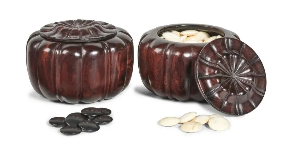 十七世纪 黄花梨瓜棱形棋盒连棋子(估价:HK$250,000-300,000)