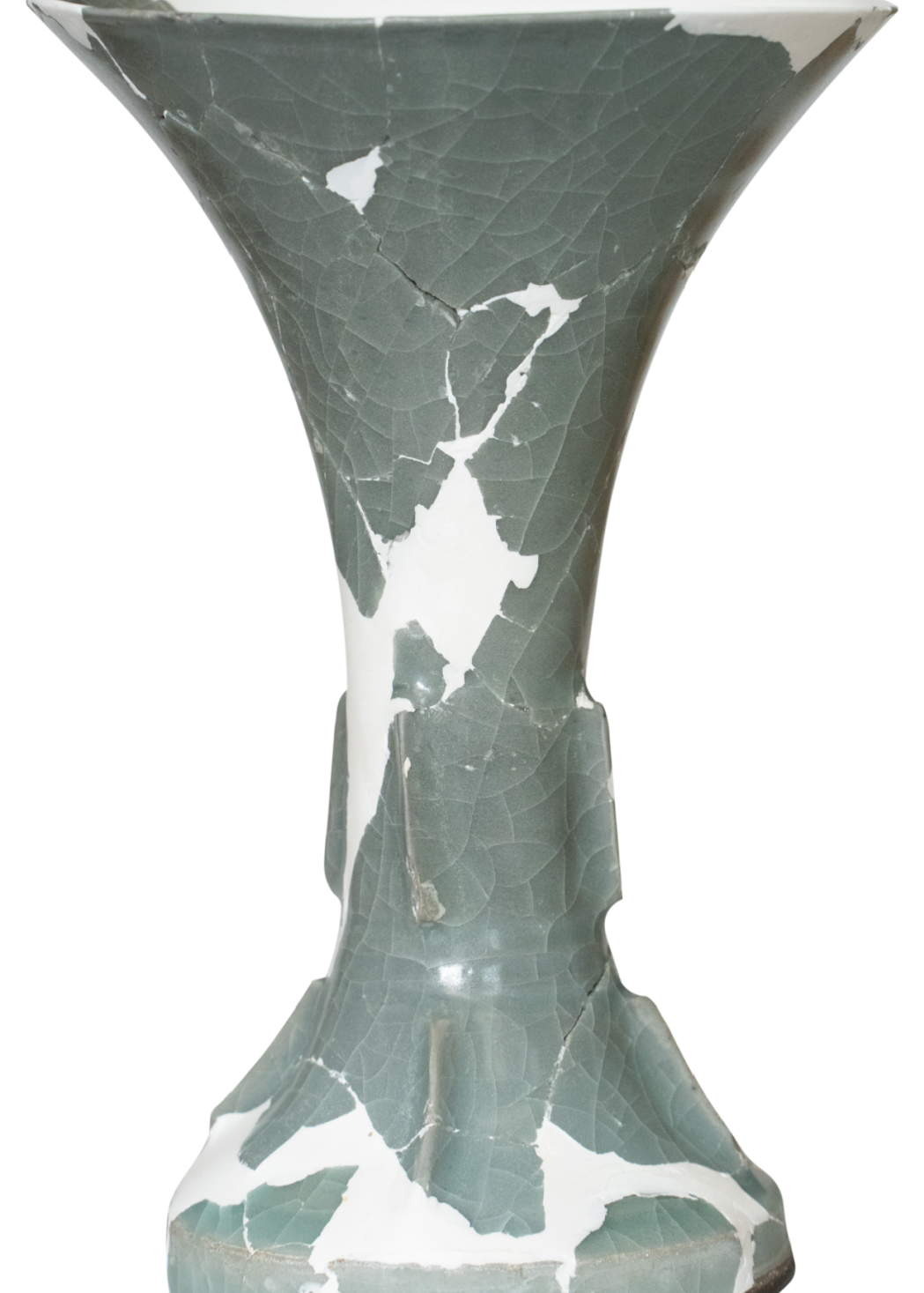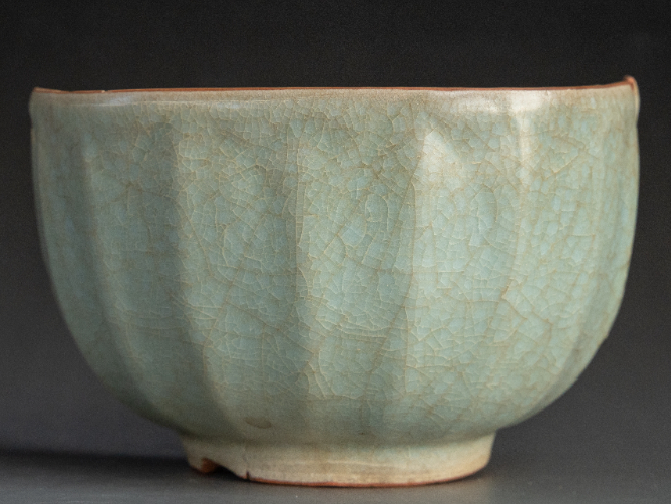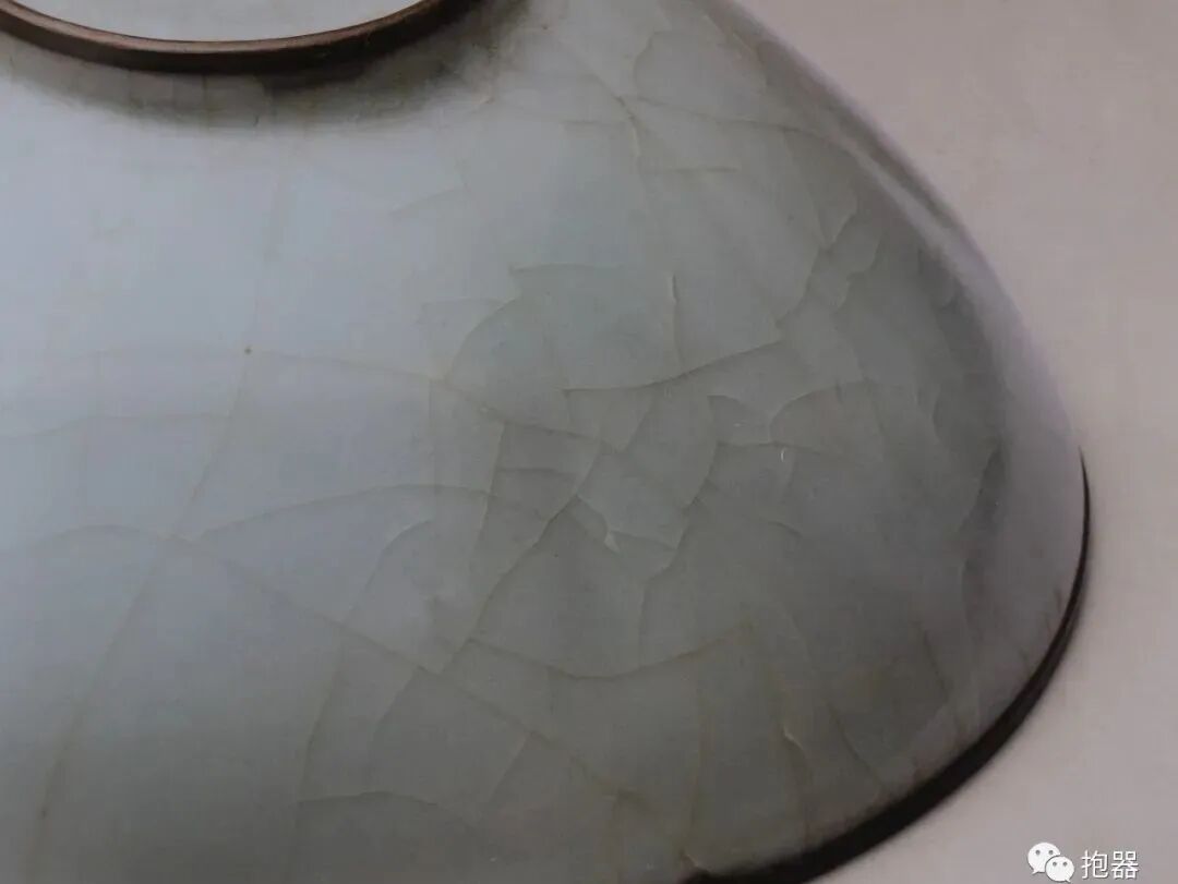 哥窑一词最早出现在明代,其所指的对象为宋代龙泉黑胎青瓷。文献记载哥窑的特征是:色青、胎黑且浓淡不一;冰裂纹和百圾碎开片;质与官窑相类。简言之,就是黑灰胎、开片、薄胎厚釉,紫口铁足而非金丝铁线。