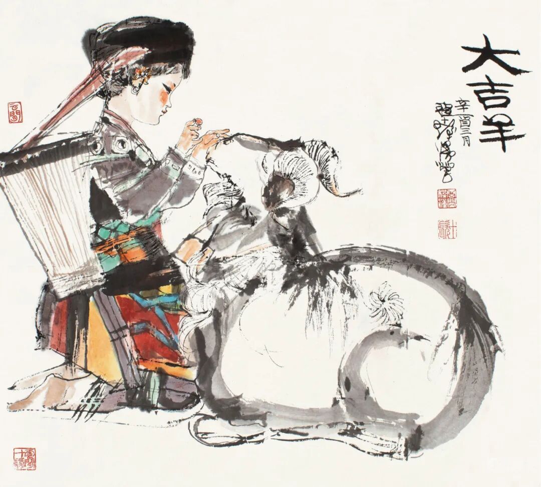 Lot 194 程十发(1921~2007) 1981年作 大吉羊注:此作于2021年10月8日经程十之子程多多先生鉴定为真迹。