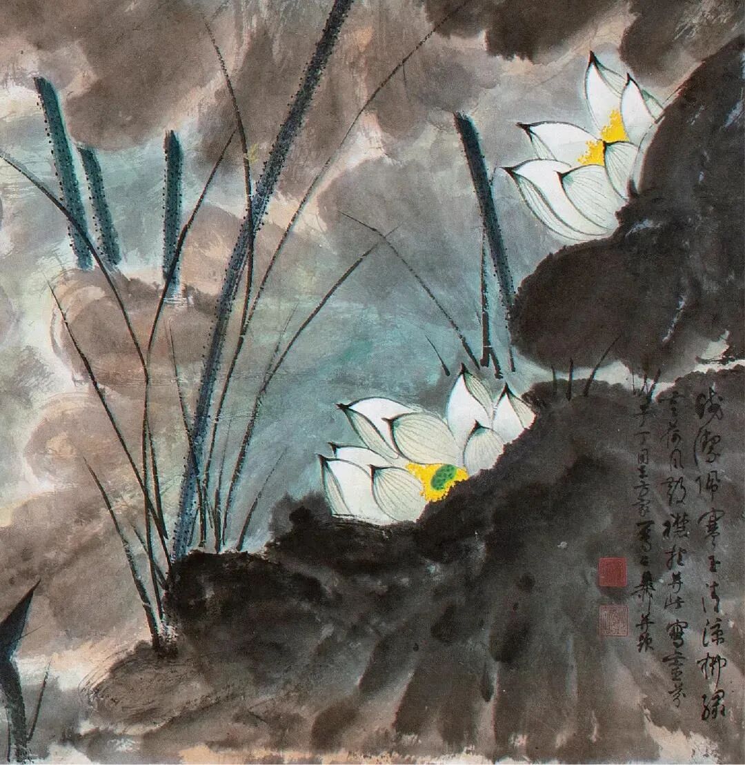 题识:皎洁佩寒玉,清凉拂绿云。荷风散襟抱,并此写灵芬。于丁同志方家属正,稚柳并题。说明:上款人“于丁”,四十年代初参加革命时任南京前线话剧团团长,解放后任职中国海军东海舰队政治部主任,上海海墨画社副社长。注:此作于2021年10月8日经谢稚柳陈佩秋之子谢定琨先生鉴定为真迹。全幅约27平尺,画风老辣,乃是谢老变法后以落墨法写成的巨幅设色荷花精品。这件《荷塘鹡鸰》尺幅之大、笔墨之精,堪称谢稚柳晚年作品中的重器,是谢稚柳落墨荷花中的一件典范之作。