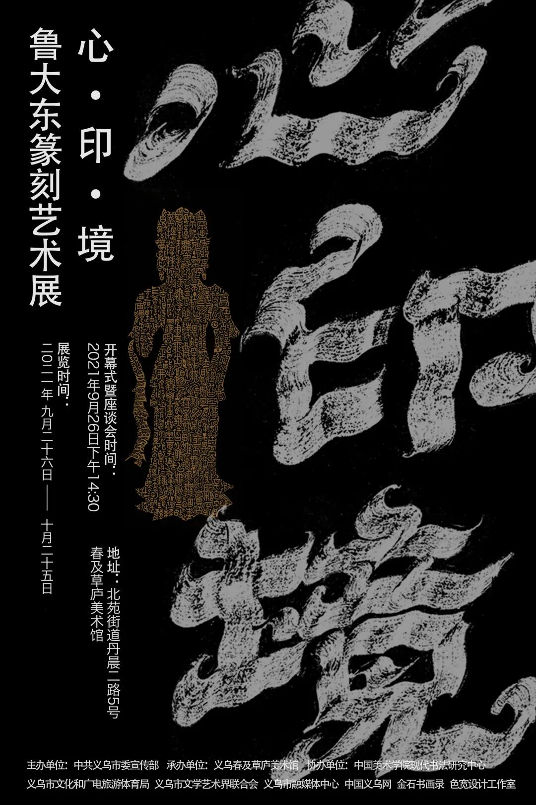 海报中的这件作品,是鲁大东为展览创作的一件特殊的书法作品。他以书法的形式,按照山东青州地区的北朝观音造像的形象,对《心经》的内容进行再创造。我们在《心·印·境——鲁大东篆刻》同样收录了这件别致的作品哦。