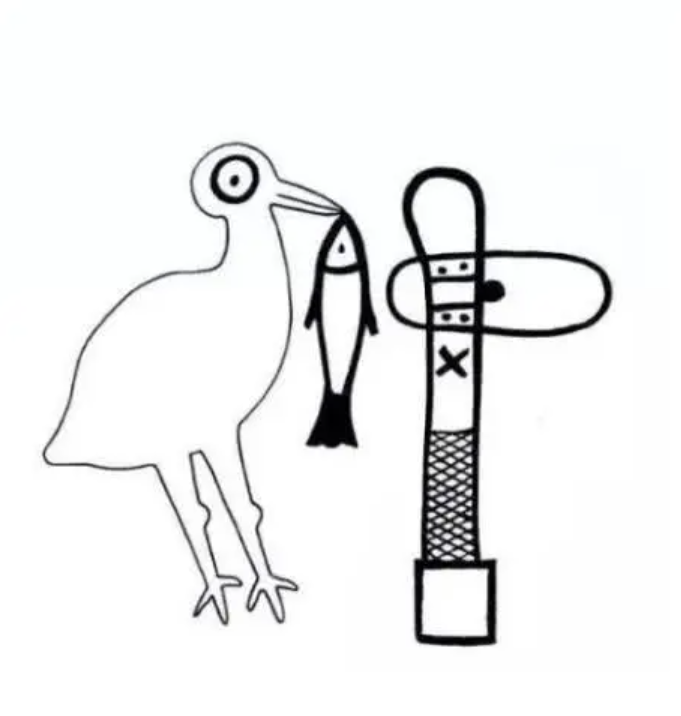 整幅图内容分为两组:右边画的是一把竖立的装有木柄的石斧。左边画的是一只圆眸、长喙、两腿直撑地面的水鸟。经专家用碳十四测定,它是原始社会仰韶文化时期的产物,距今已有6000年左右的历史,目前收藏于中国国家博物馆,是中国国家博物馆的镇馆之宝。