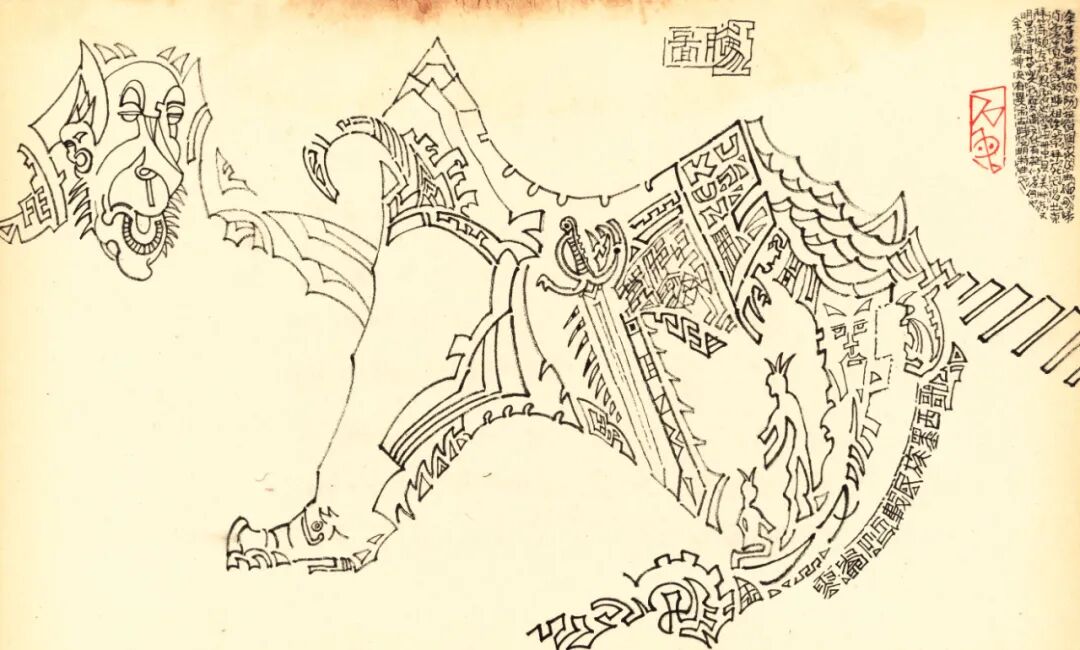商周青铜器一般的狞厉造型里,布满了难以辨认的字迹,像是天书由君猜读。