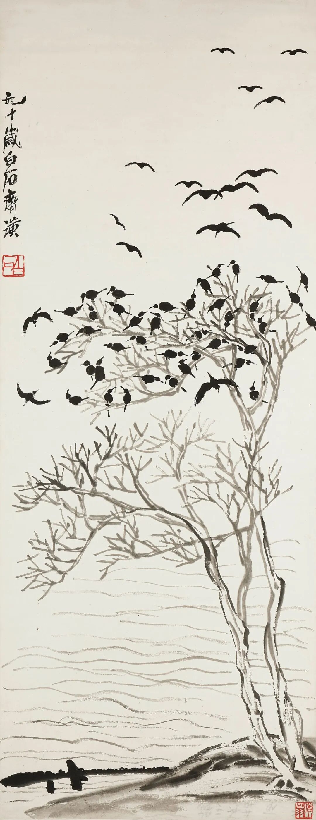 我们经常讨论白石老人的设色如何大胆精妙,但是更纯粹的中国表达还是来自他的水墨作品。