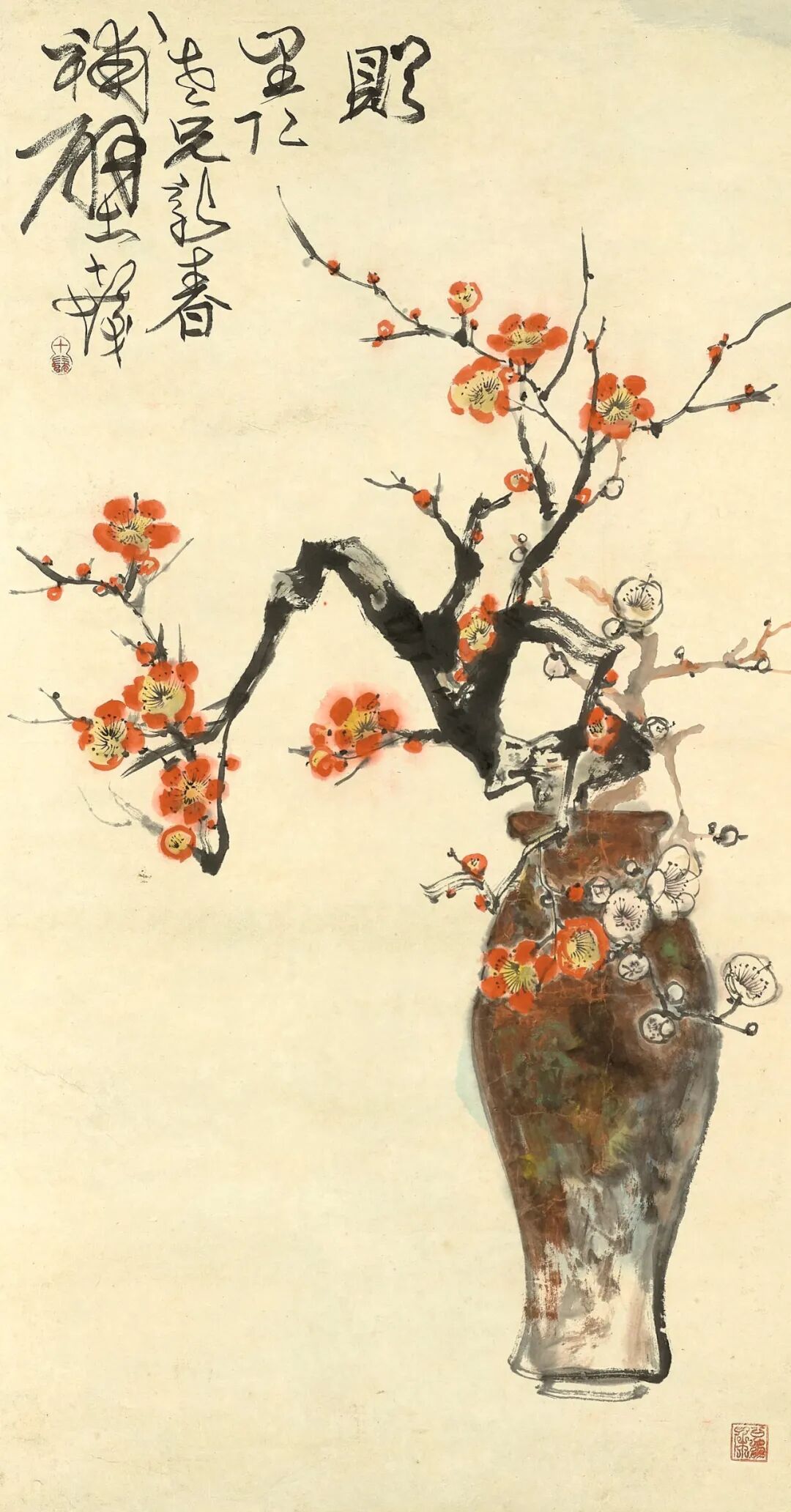 当然,金石味入画的最高峰必须是吴昌硕。在吴昌硕的画里,非常讲究笔墨的书法韵味。