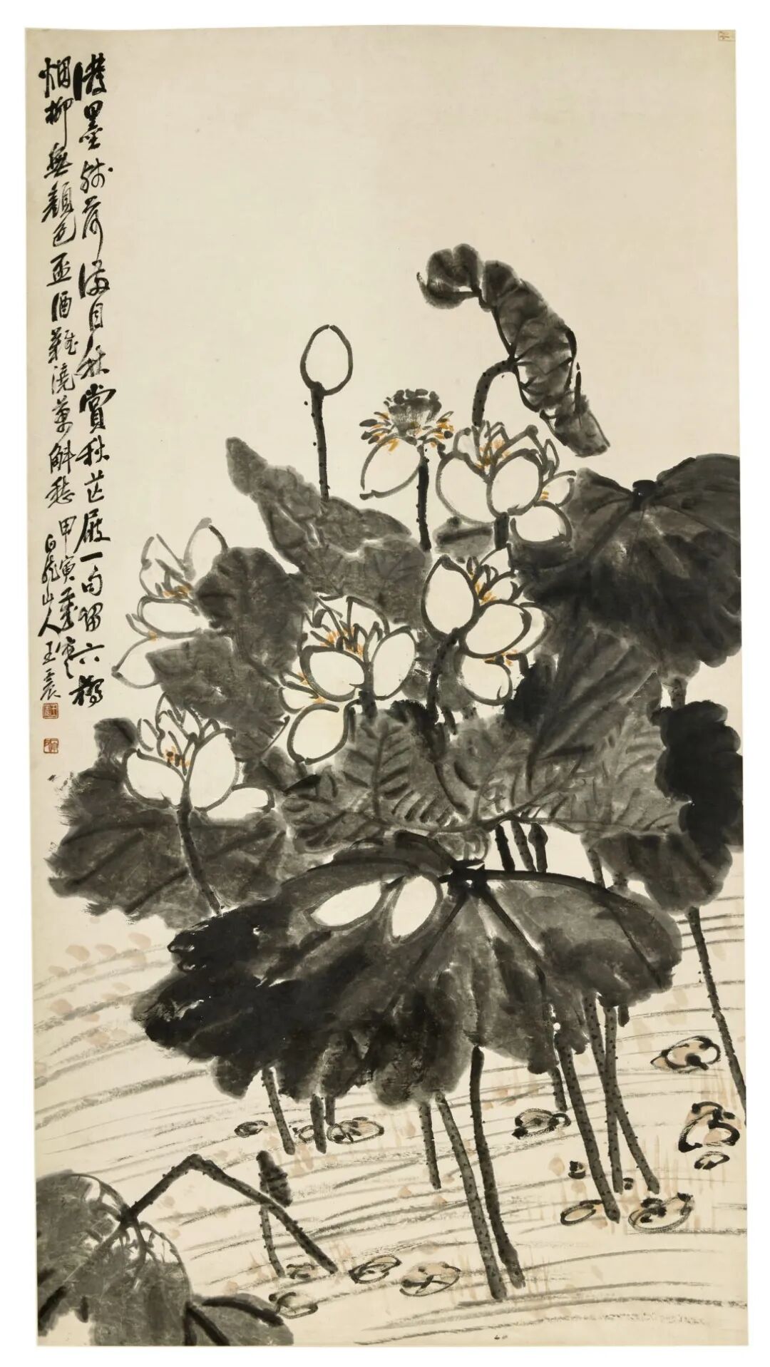 王震是吴昌硕最有影响的弟子。他是长袖善舞的上海大亨,也是虔诚礼佛的居士。他画的墨笔荷花,没有吴昌硕那么强悍硬核,而多了几分挥洒自如。