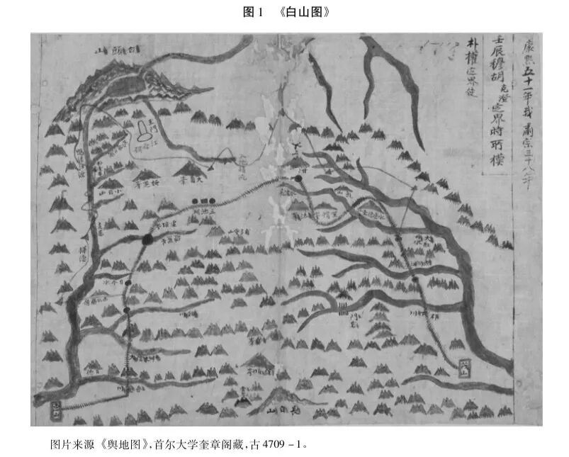 考察康熙五十一年(1712)穆克登立碑的位置,应该从当年留下的第一手资料入手,进行仔细的比对和分析。由于清朝内阁大库失火,中方缺失相关的定界资料,但朝方保留着大量当年的第一手资料,比如朝鲜随行译官的日记和行记,差员、军官及译官的驰报、手本,以及接伴使的状启等。此外,首尔大学奎章阁还藏有清朝画员绘制的山图的模本——《白山图》,这些都属于亲历者留下的第一手资料。