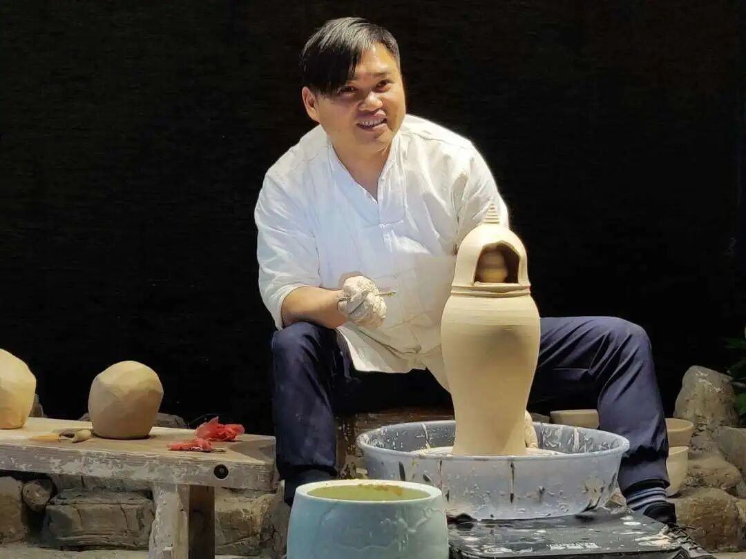 陶艺实践基地陶艺与拉坯非遗传承人交流、观看表演,体验拉坯、青花和五彩绘画