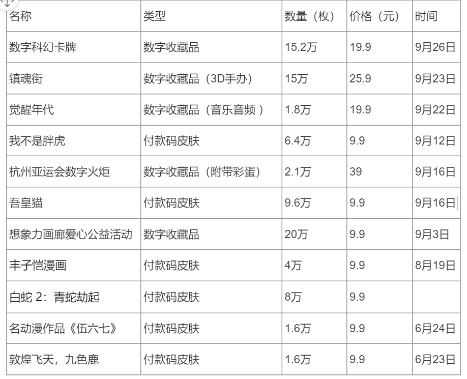 截至目前,我们发现支付宝共计发售超过10次数字艺术品相关产品,基本数据如下: