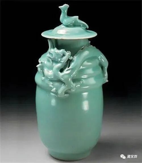 温州博物馆珍藏的南宋龙泉窑梅子青釉堆塑龙瓶