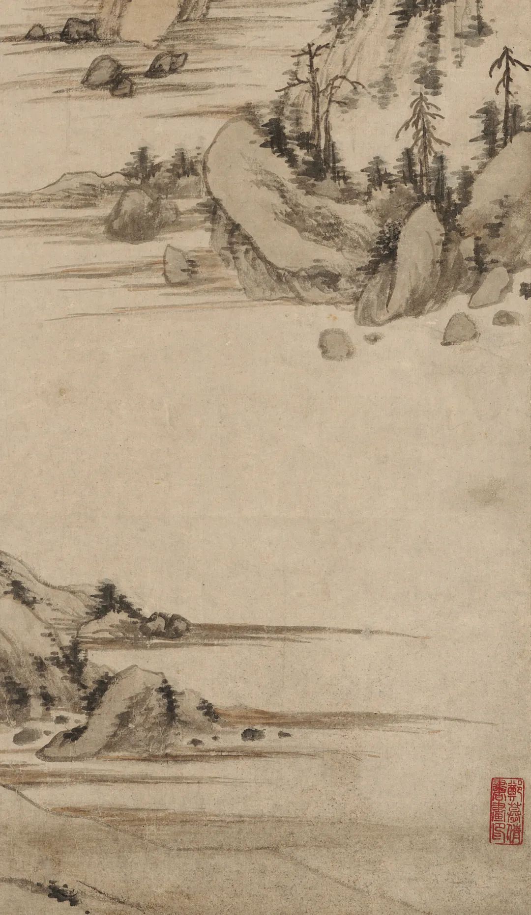 郑旼(1633~1683) 罕见细笔山水 钓台图