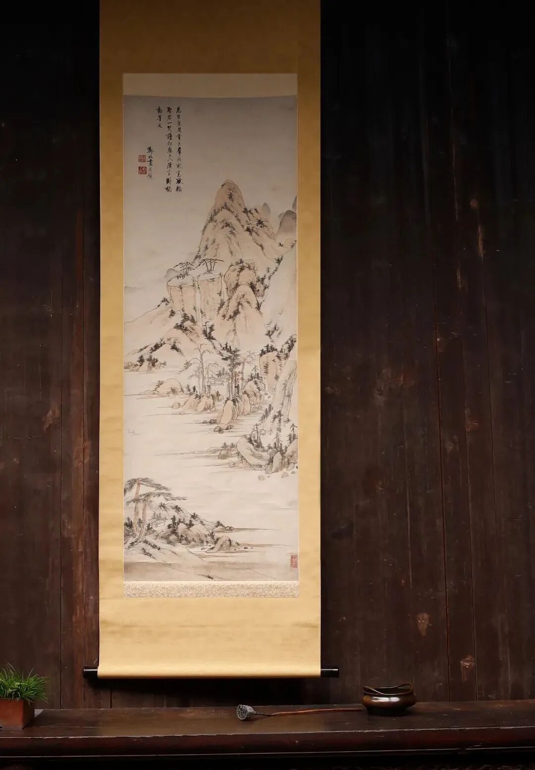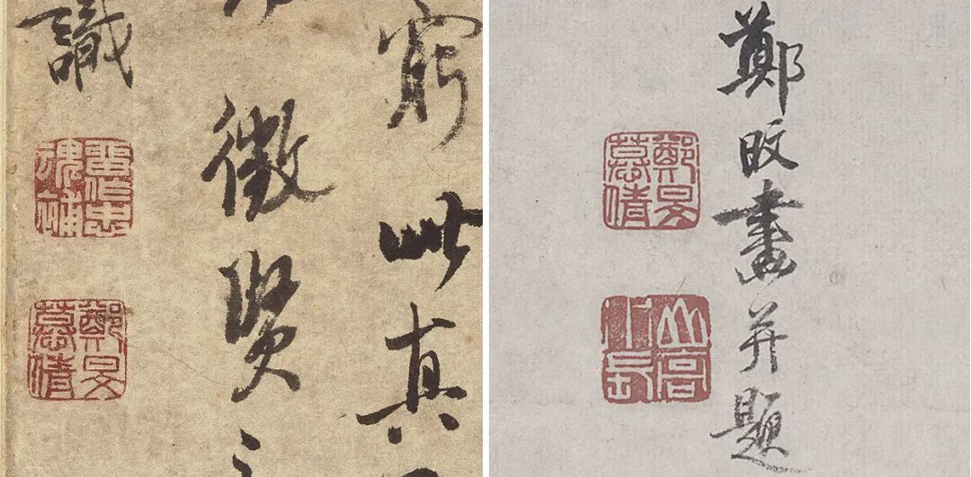 钤 印 “郑旻慕倩”、“山高水长”,收录于《中国书画家印鉴款识》第46及55号,此组对印并见钤于上博藏郑旼《黄山图四屏》。