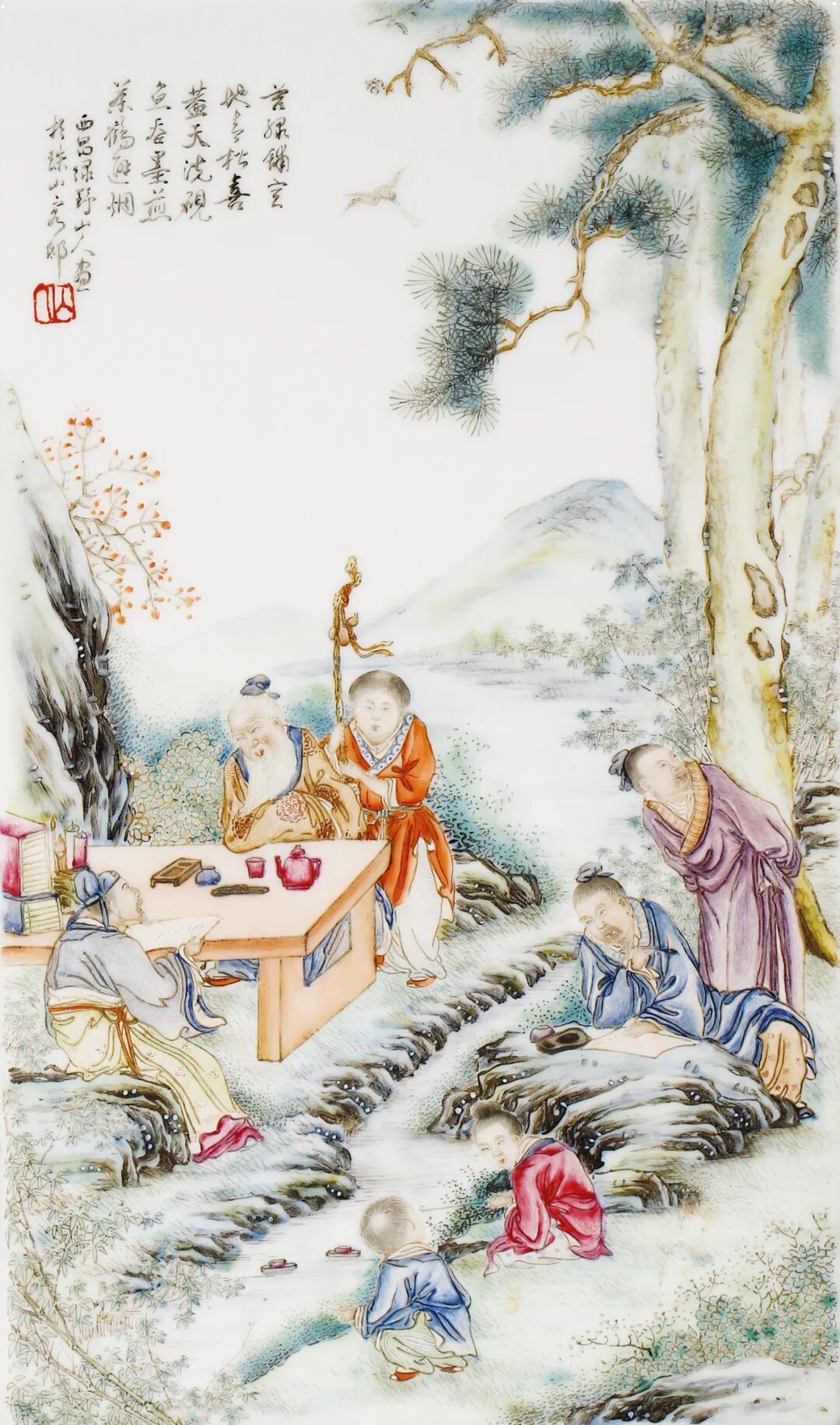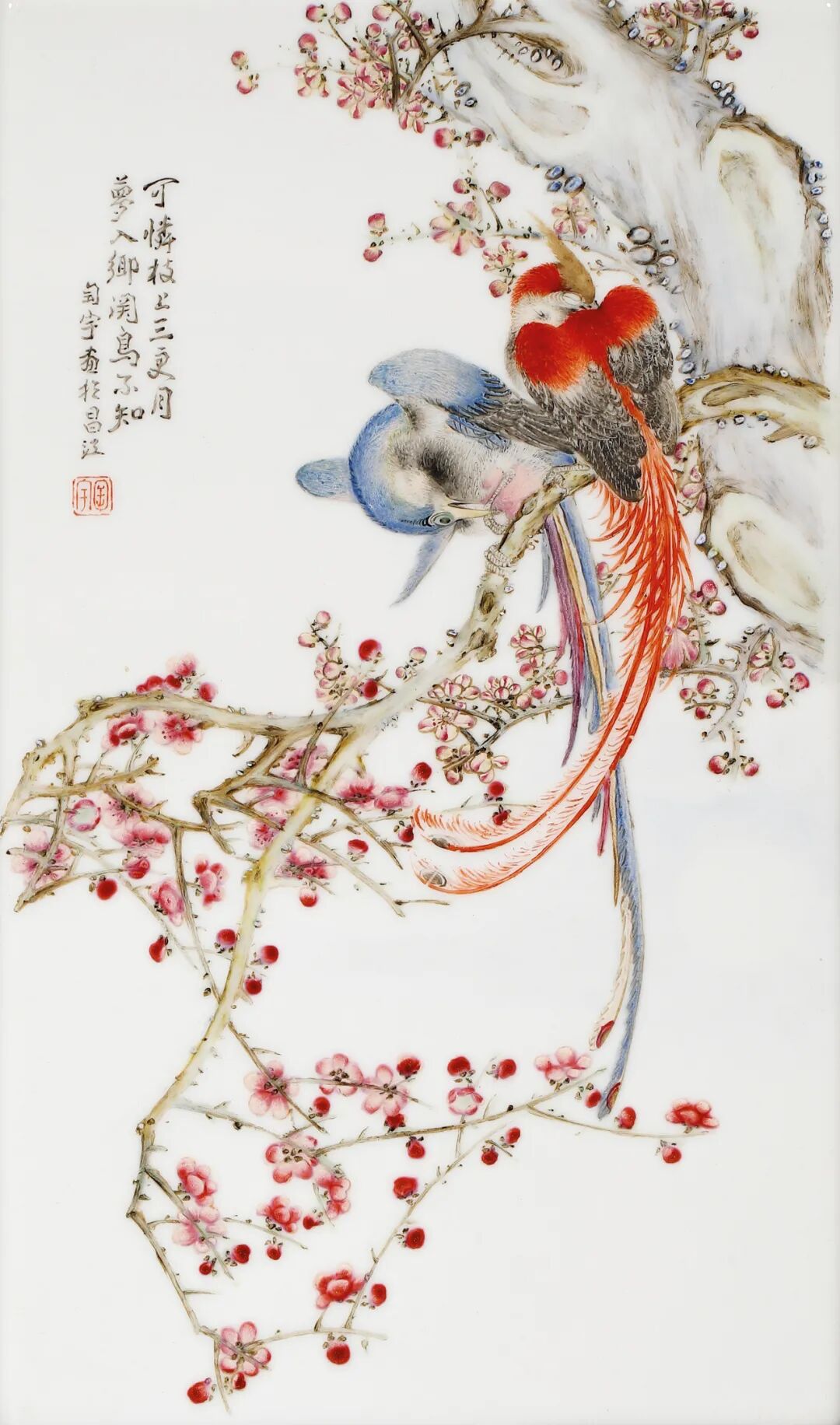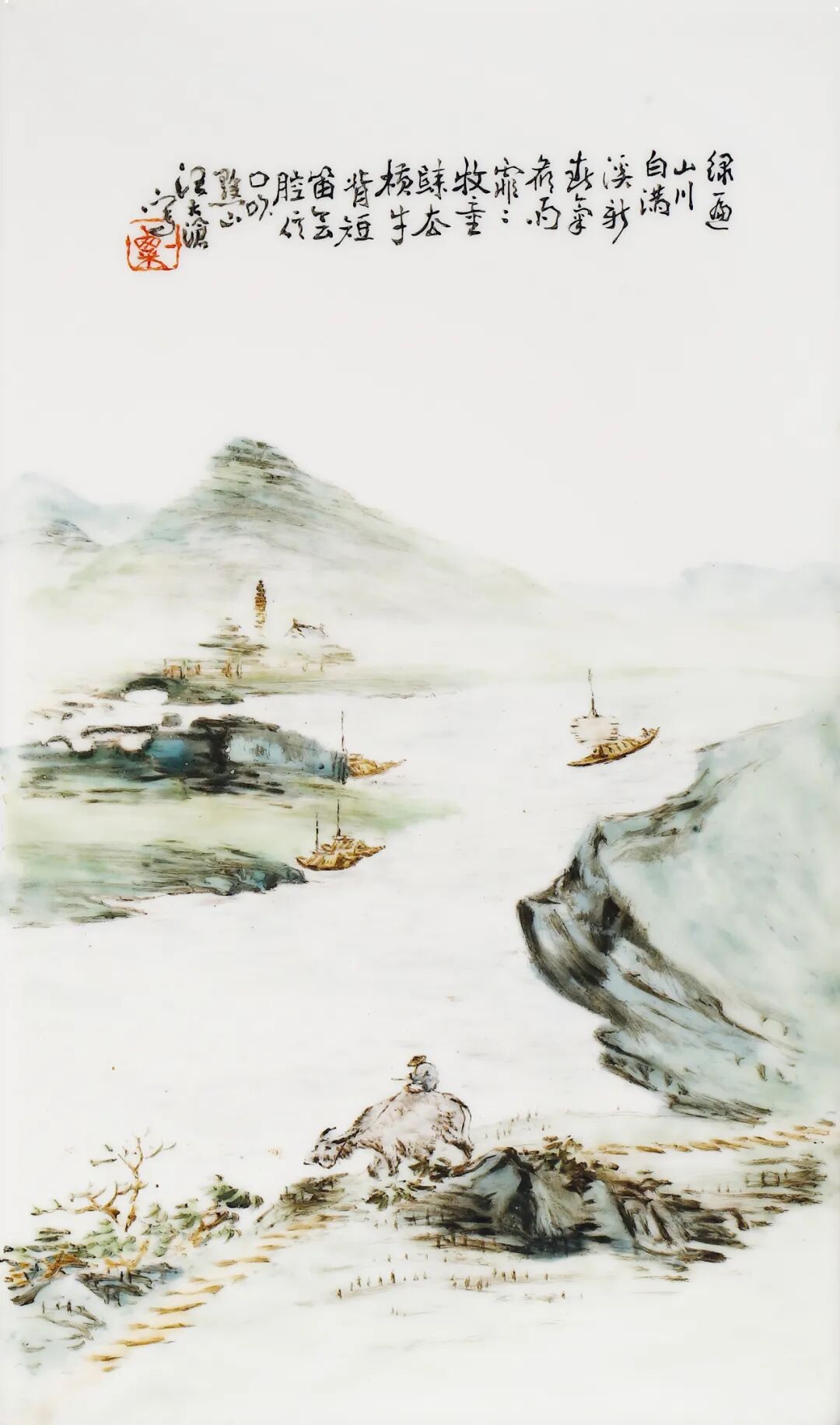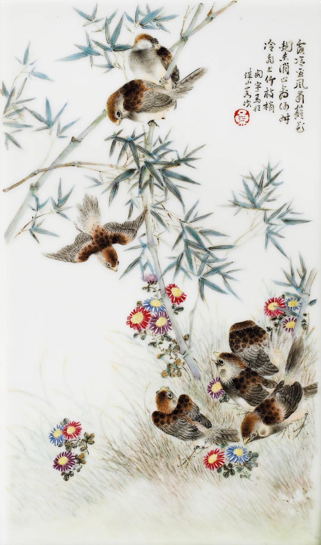 作者简介:潘匋宇(1877-1926),江西鄱阳人。字鼎钧,又名古欢,号“詹湖外史”,斋名古欢斋。清末、民国初年景德镇绘瓷名家,亦被称为景德镇现代彩绘的奠基人。1911年后潘匋宇出任江西省甲种工业窑业学校图画教师,在执教之余,常绘彩瓷,擅长粉彩人物、花鸟。其作品格调淡雅,主题突出。1923年曾为军阀曹锟彩绘文房用具。作品常附有题诗和印章,无论是构图还是技法,与水墨画并无差别。作品虽流传甚少,但对景德镇陶瓷绘画影响极大,其学生汪野亭、刘雨岑和程意亭均为“珠山八友”中人。