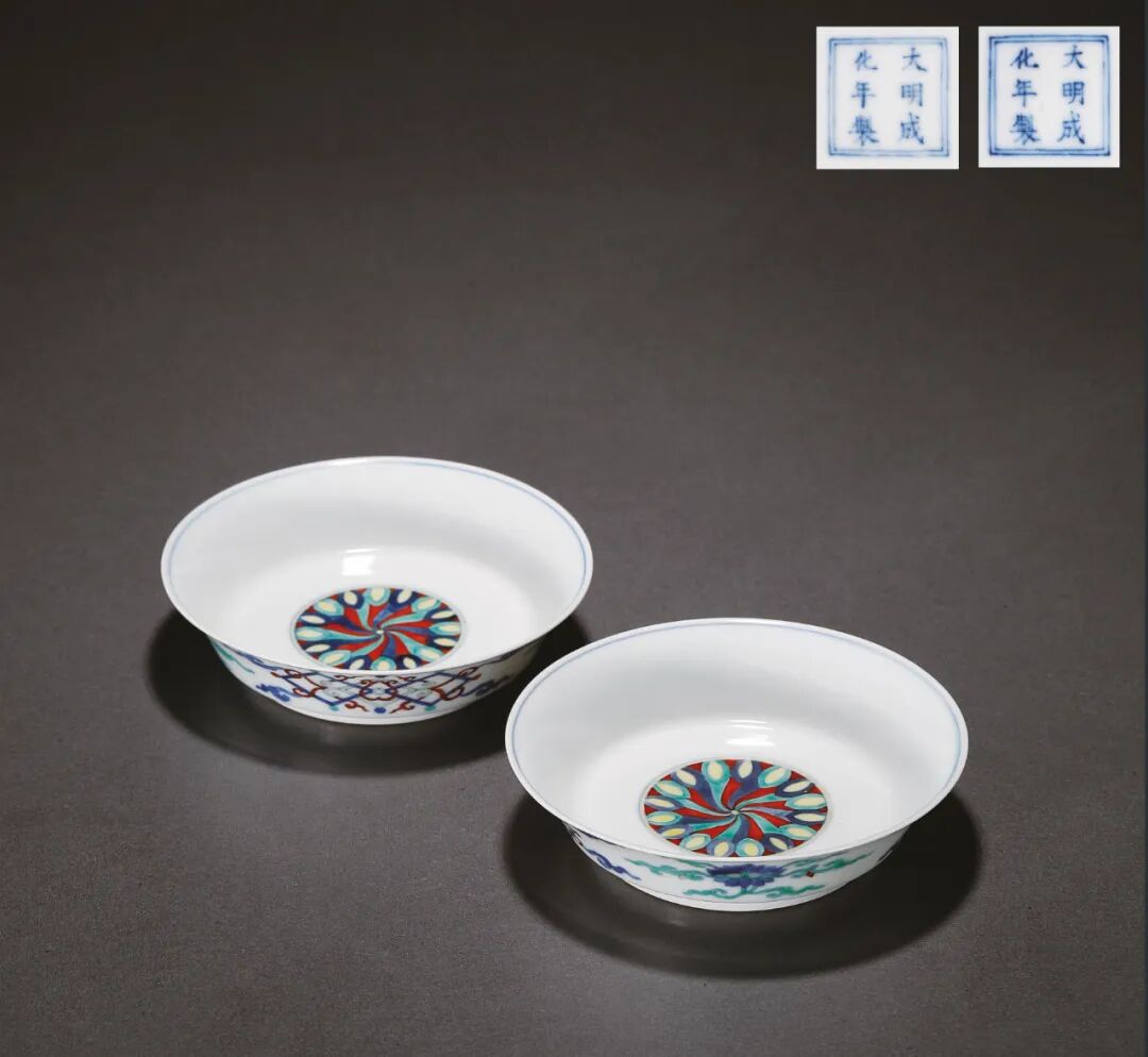 清雍正·仿成化斗彩方胜纹盘 (一对)