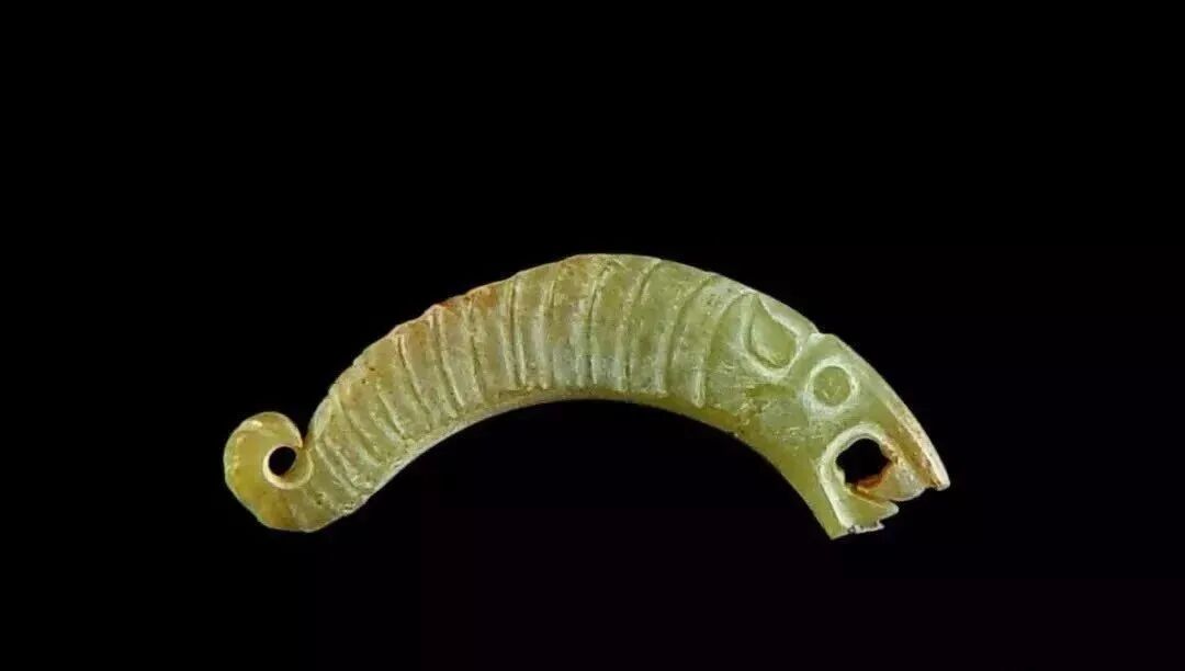 在距今5000多年的河姆渡遗址中发现的一枚带写实蚕纹的象牙杖首,蚕的形象在当时等级极高且带有神权寓意的首饰上呈现,则确证了在史前的中国就已经出现了对蚕桑主题的崇拜现象。从此以后,蚕的形象就经常出现在不同时期的装饰品上,其中最常见的形式是玉雕的蚕形佩饰。目前发现的最早将蚕的形象单独雕琢成玉器的现象始于北方辽河流域的红山文化。红山玉蚕整体线条挺拔流畅,简约而不失精美,体现出红山先民对蚕深深的喜爱和崇拜之情。