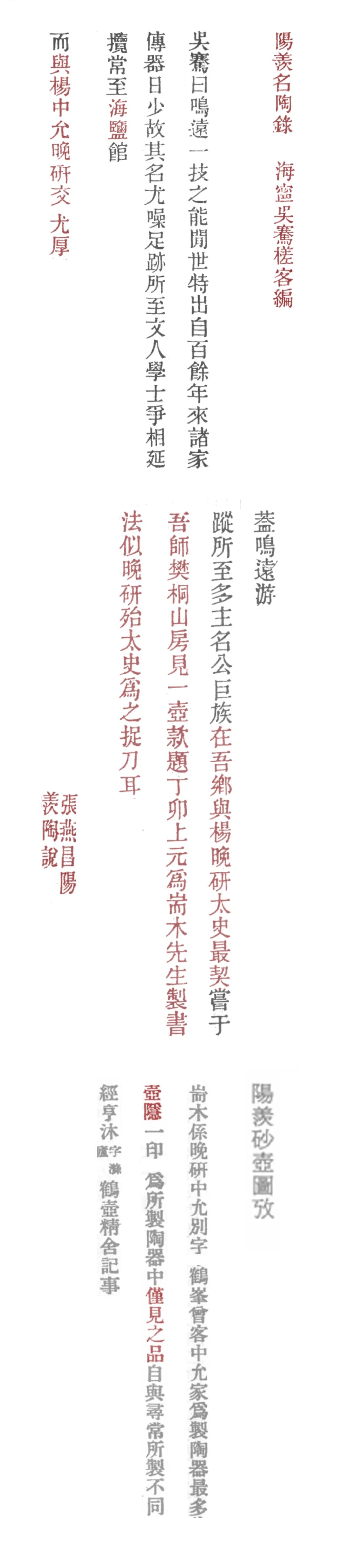 吴骞《阳羡名陶录》:陈鸣远擅有清一代之绝技,当日文人学士争相延揽,而与杨耑木交尤厚。