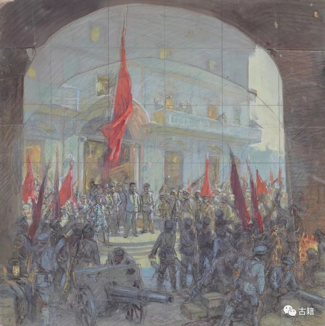 南昌起义小稿之一 32cmx32cm 纸本淡彩素描 1977年 中国美术学院美术馆藏