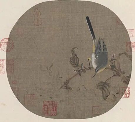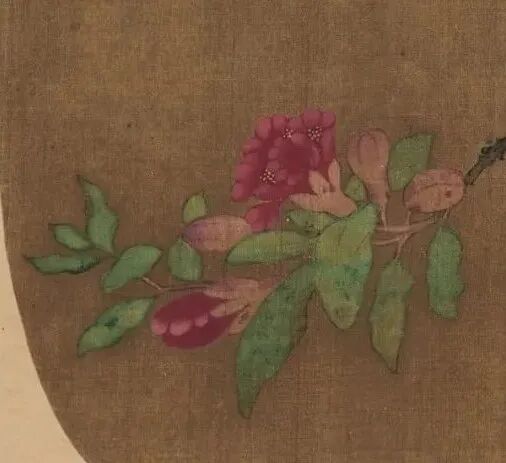 《石榴小禽图》就是典型的钱选风格,有院体的精准造型,设色又没有院体那么浓重死板,看上去非常舒服。花卉枝叶借鉴了扬无咎一派的水墨技法,有很好的渲染效果。