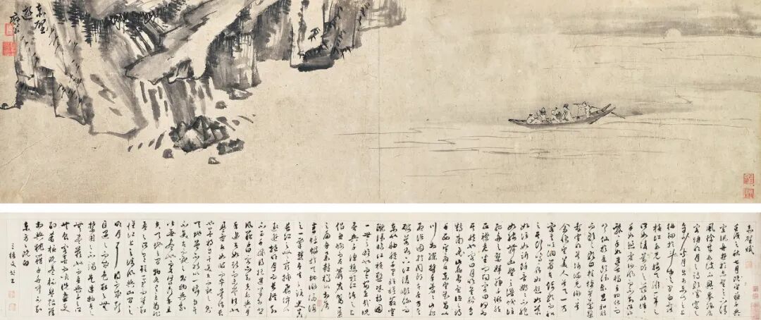 这幅画的书法题跋也非常厉害,抄写九歌原文的是元代的书法家吴睿,上海博物馆藏的张渥《九歌图》也是他的字。