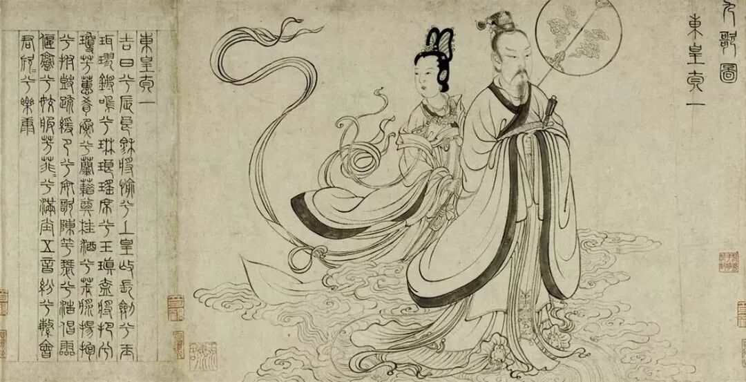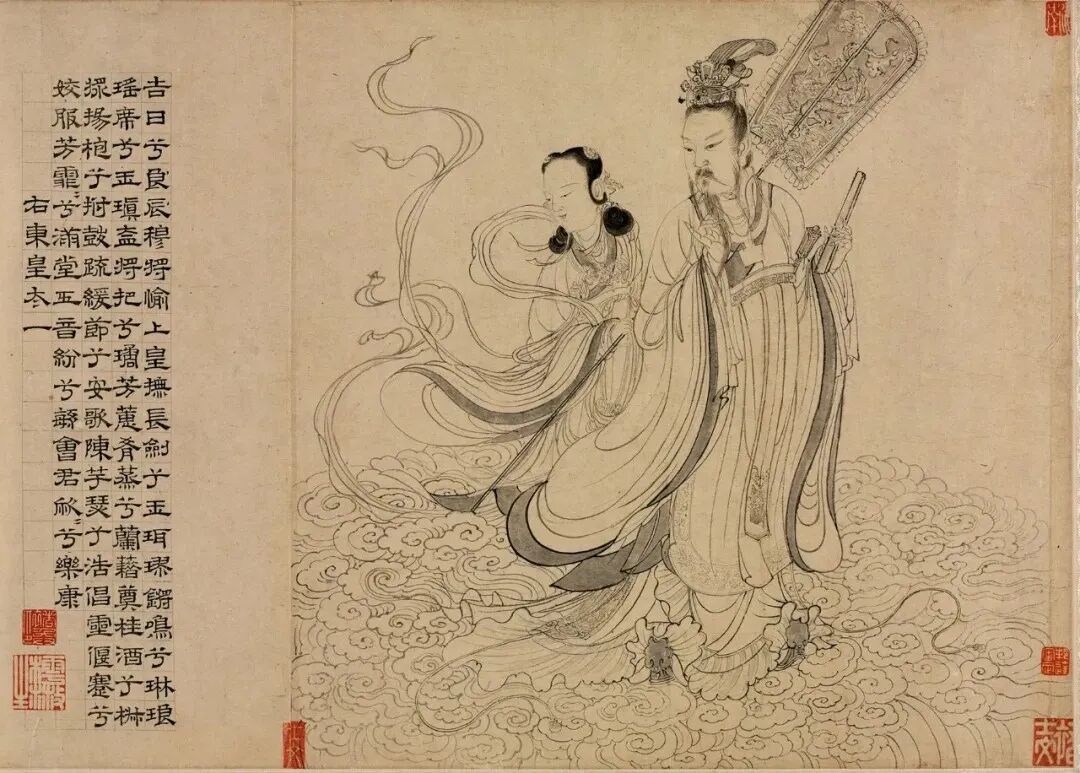 作者依据《九歌》原诗的情节,逐一绘制出东皇太一、云中君、湘君、湘夫人等人物的形象。线条流畅,宛如如行云流水,人物形象充满了各自的不同神韵。