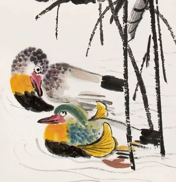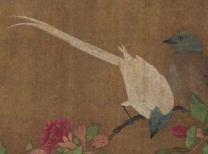 禽鸟的刻画精细,但神态放松自然、绝不死板。特别是鸟的尾巴和爪子细节十分灵动,非常见功力,跟宋人名作《红蓼水禽图》有异曲同工之妙。