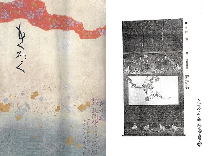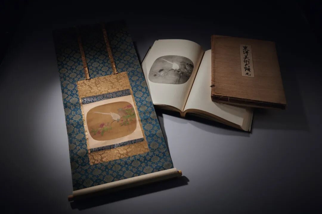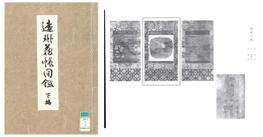 (《远州藏帐图鉴》里收录的《石榴小禽图》和李迪的两幅画)