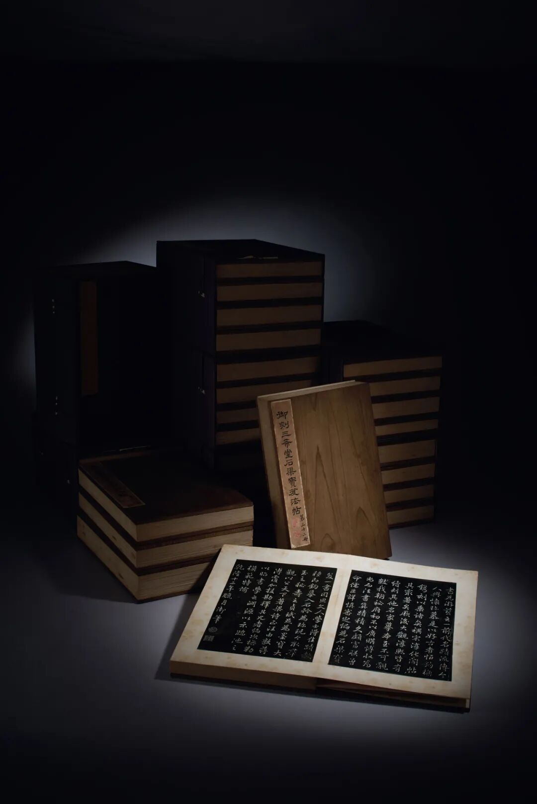 中国书法刻帖之兴盛,自宋太宗淳化年起,至明清时期一直繁盛。从传拓用料、工艺的角度来看,清代内府御刻法帖可以说是其中之翘楚。特别是清乾隆时期《御制三希堂石渠宝笈法帖》三十二卷,从内容、装帧上,更是其中集大成者。这次上拍的一部御刻三希堂石渠宝笈法帖是清中期的原拓本,品相也非常好。
