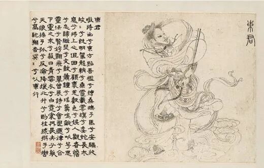 《九歌》是屈原的名作,最早将它用绘画的形式表现出来的,是宋代大画家李公麟的《九歌图》。到了元代,画家们纷纷对李公麟的《九歌图》进行模仿或再创作。