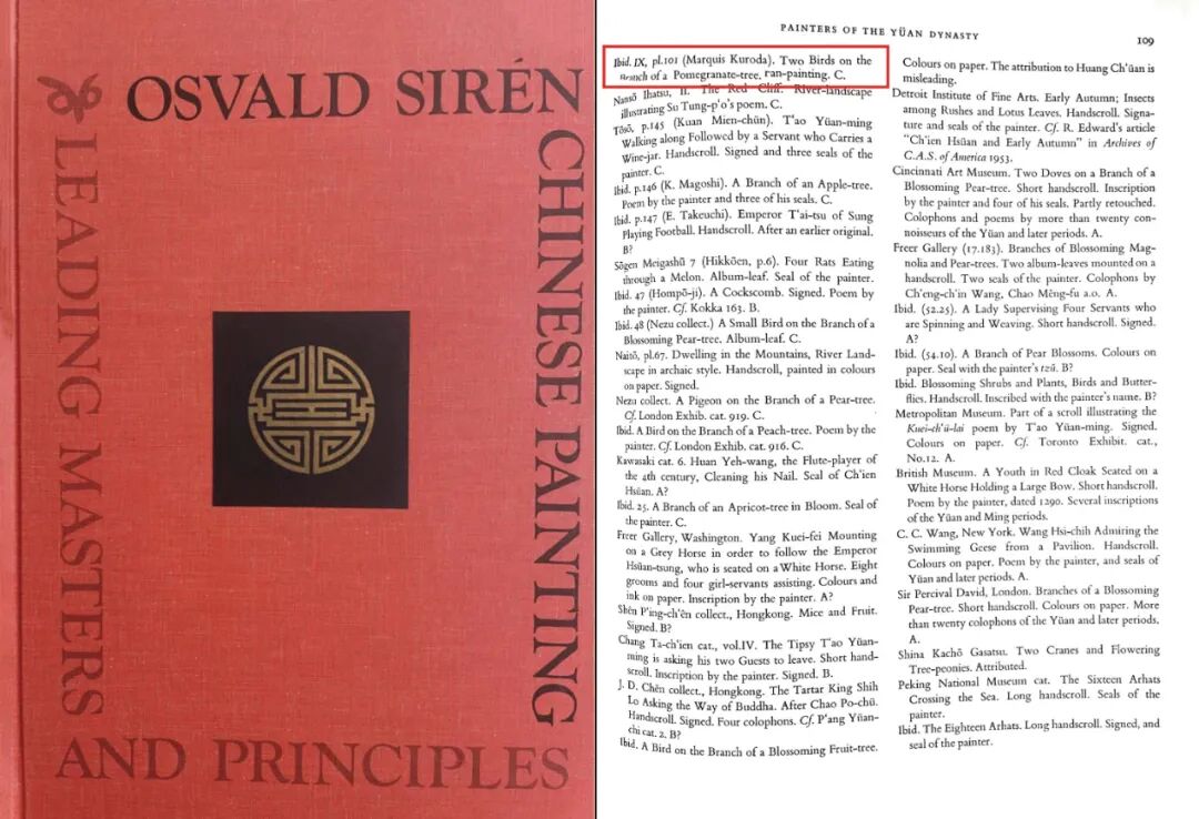 (喜仁龙的巨著《Chinese Painting: Leading Masters and Principles》也收录了《石榴小禽图》)