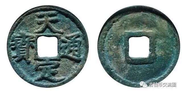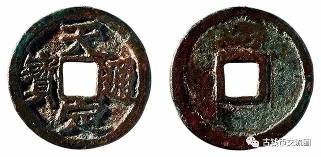 天定通宝是徐寿辉迁都江州,改元天定期间(1359-1360年)铸造,凡大中小三类形制,分以折三、折二和小平对应。