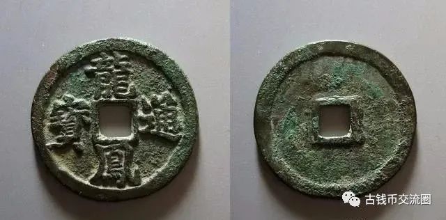 “龙凤通宝”钱文楷书龙凤通宝,钱文直读,“龙字末笔短缺,”“凤”字下有一小点,字体端庄,钱背光而无文。铜赤如金,钱体浑朴,文字遒劲优美,面值有小平、折二、折三。龙凤通宝存世比较罕见,是元末群雄铸币中的珍罕品种。