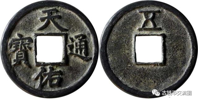 “天佑通宝”是元末起义军张士诚铸。张士诚出生于1321年,江苏泰州人。以前就是一个盐贩子,是一个比较有钱的人,当时元朝政府是不容许买卖私盐,他很多贩卖私盐的盐枭朋友被元朝政府处死了,为了生存,张士诚在至正十三年在台州起义。因其素有侠义之心,所以在当地颇有名望,被推举为起义军首领,随着起义军不断壮大,张士诚在高邮建立的大周政权,后来定都平江(今江苏苏州),于元至正二十三年(1363)自立为吴王,后人常称其为吴王张士诚。
